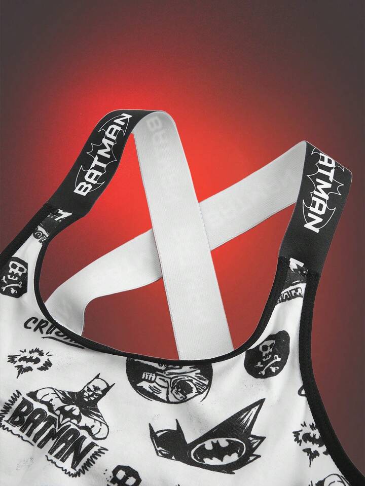 Batman X ROMWE طقم حمالة صدر لاسلكية وسروال بطباعة خفاش والنص للنساء