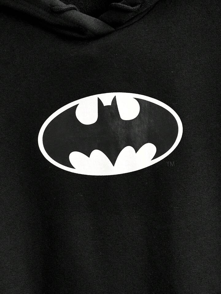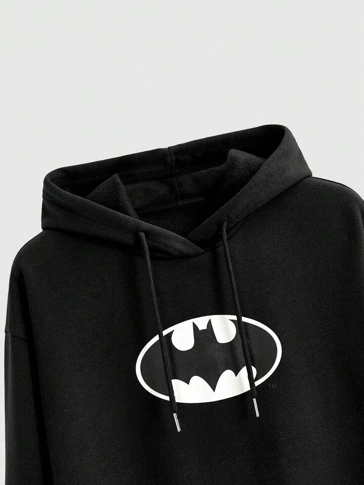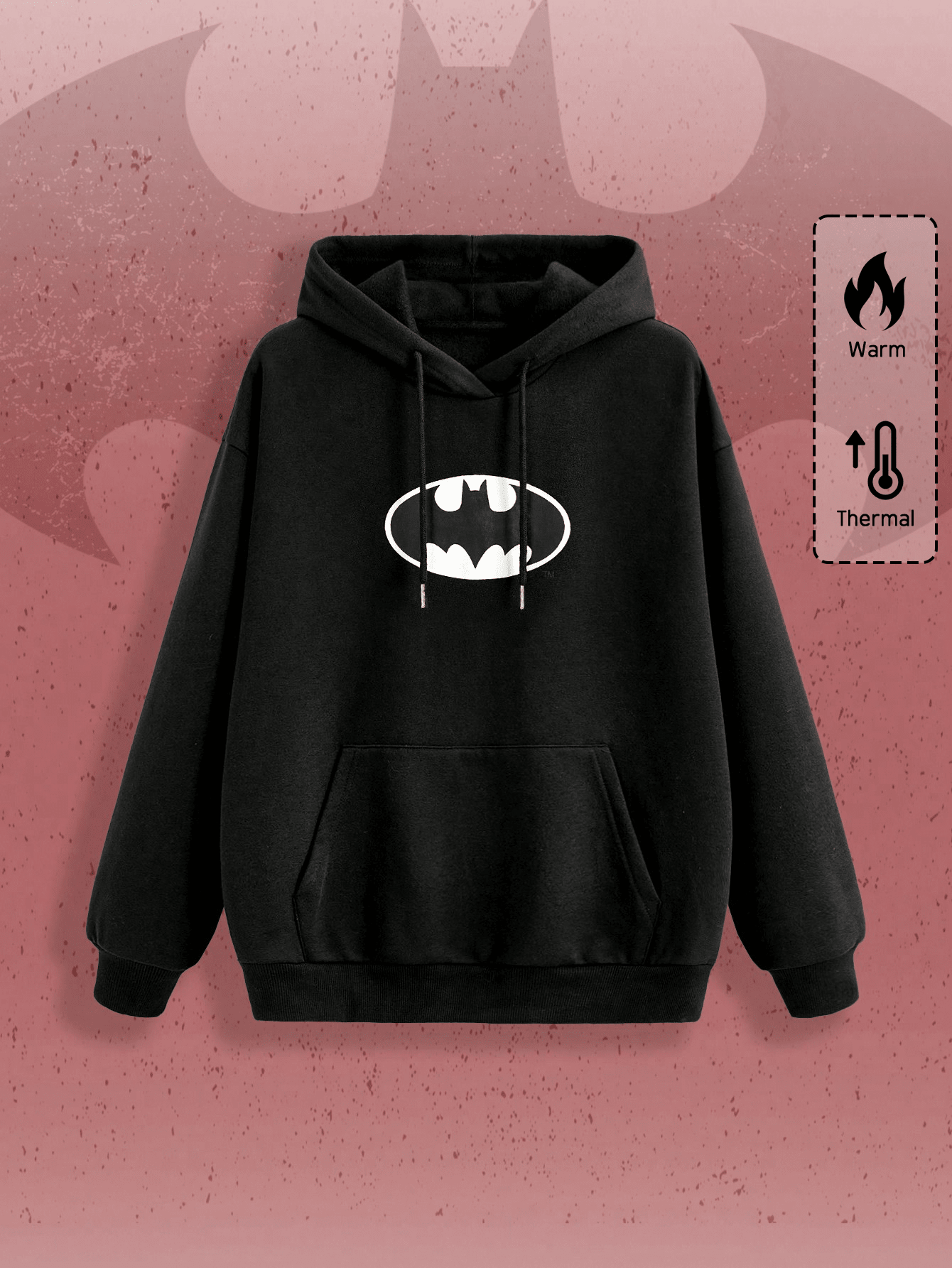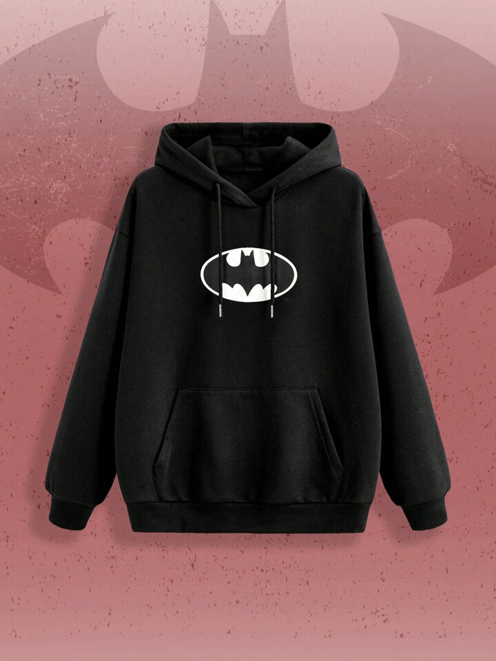 Batman X ROMWE قميص ثقيل نسائي كاجوال ذو كابور مطبوع بالخفاش مع سحاب للخصر، للموسم الخريفي