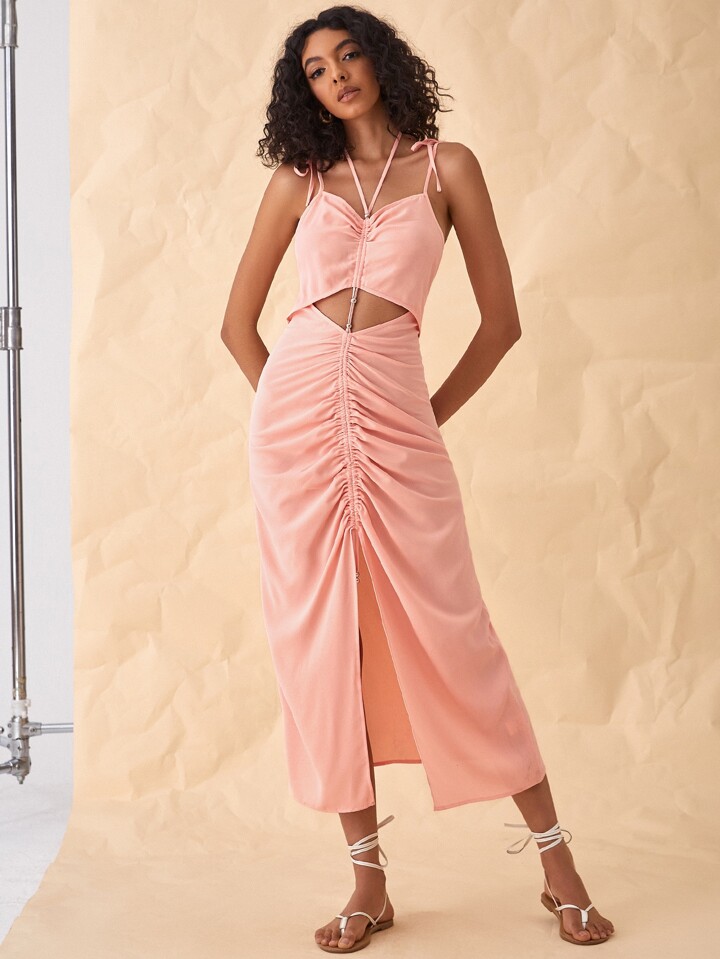 فستان الخرزة مثقوب الثنية ممزق الصاف بوهو