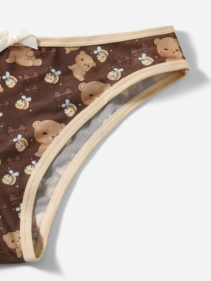 Beereckless Kawaii لانجري جذابة نسائية عقدة الفراشة بشريط متاين تصميم الكرتون لطيفة