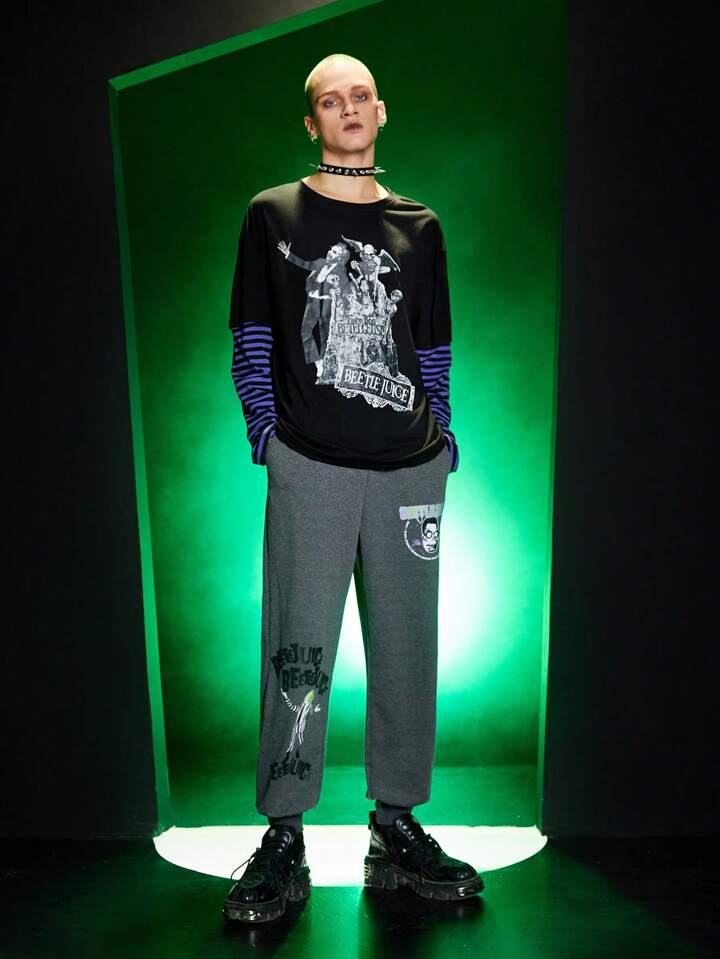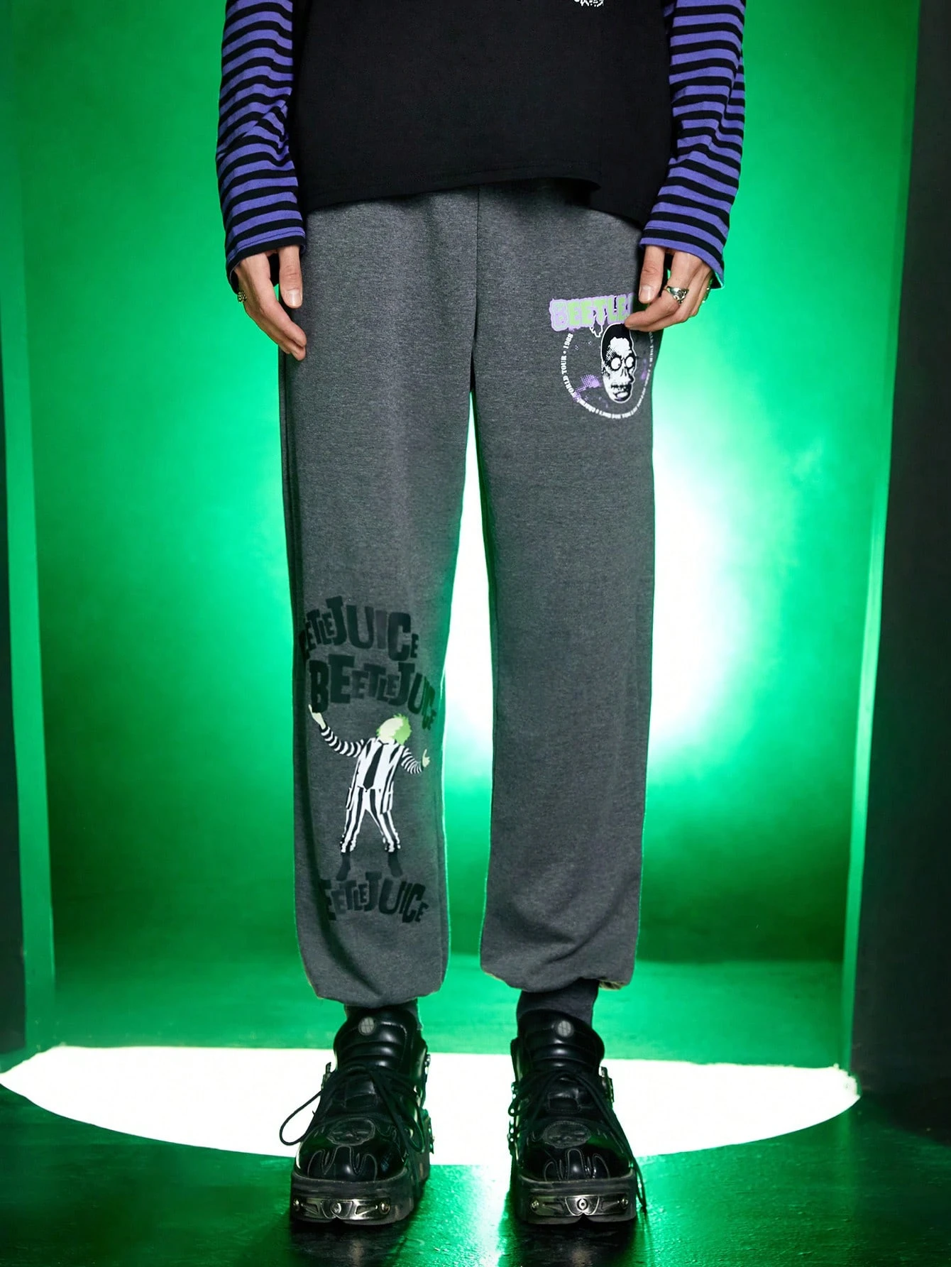 Beetlejuice | ROMWE بناطيل رياضي بطباعة أحرف للشباب