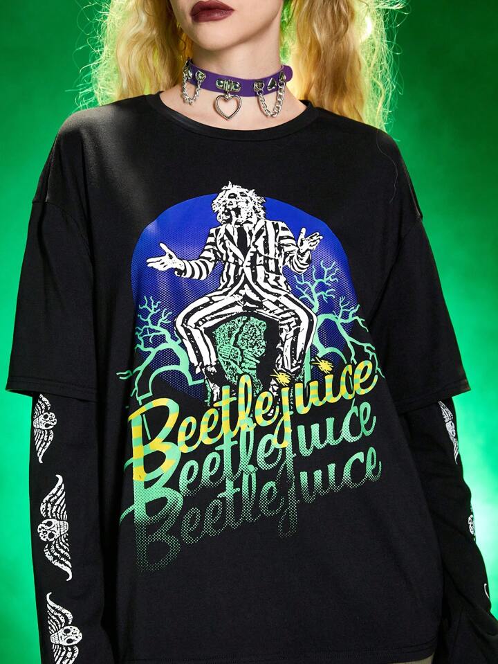 Beetlejuice | ROMWE تي شيرت منخفض الاكتاف حرف جرافيك شخص