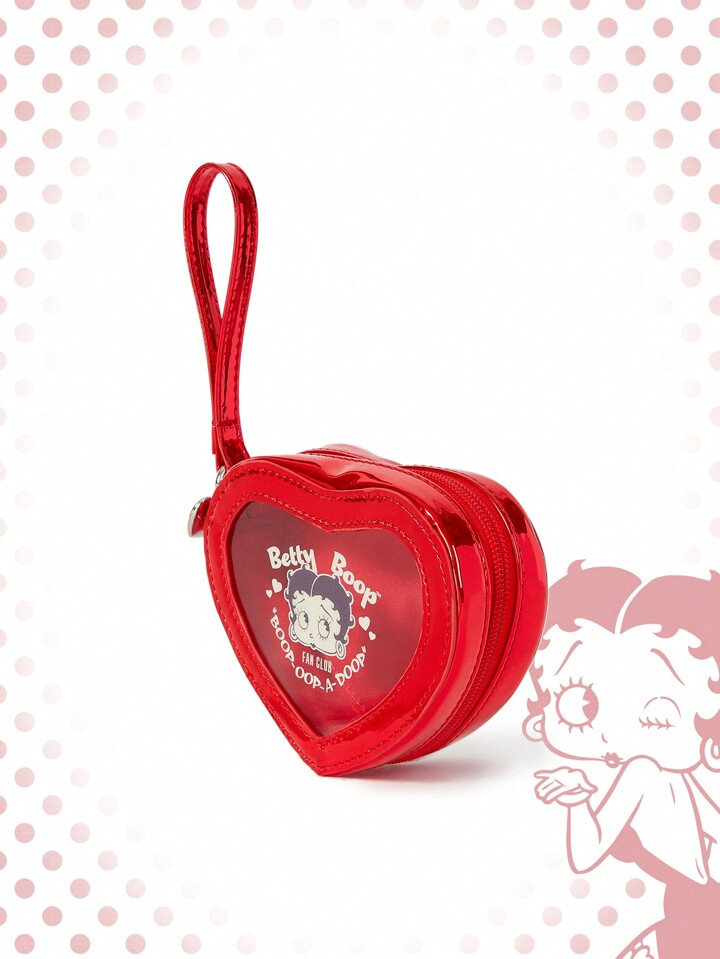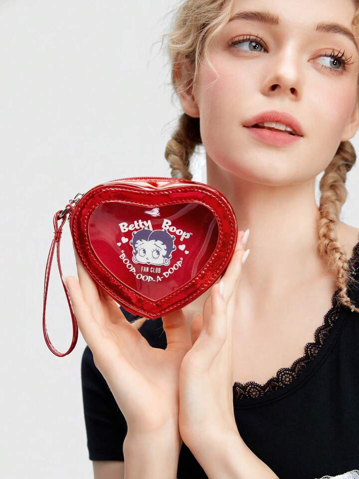 Betty Boop | ROMWE محفظة صغيرة عصرية للعملات مطبوع عليها قلوب وأحرف كرتونية، هدية عيد الحب