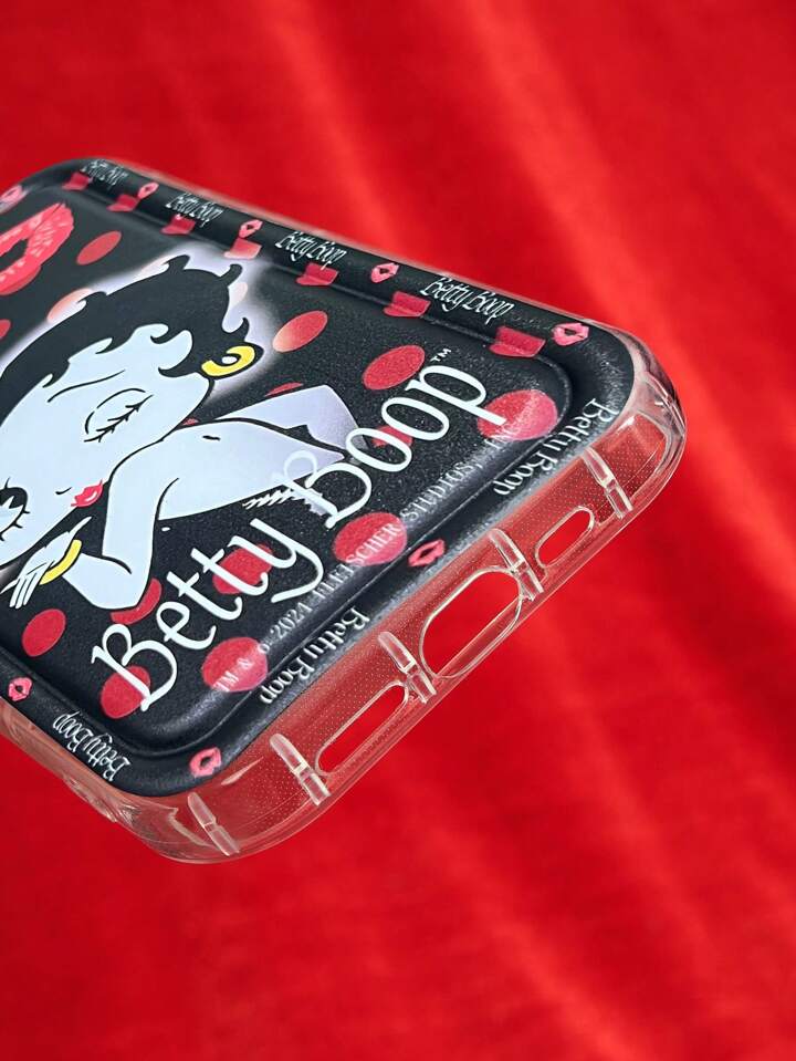 Betty Boop | ROMWE علبة تليفون شفافة معدّة للهواء ومرسومة باليد بتصميم شخصي كرتوني من النقاط السوداء والحمراء وتدرج الشفاه الحمراء ومتوافق مع سلسلة هواتف iPhone 12/13/14 للحماية