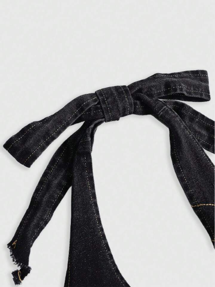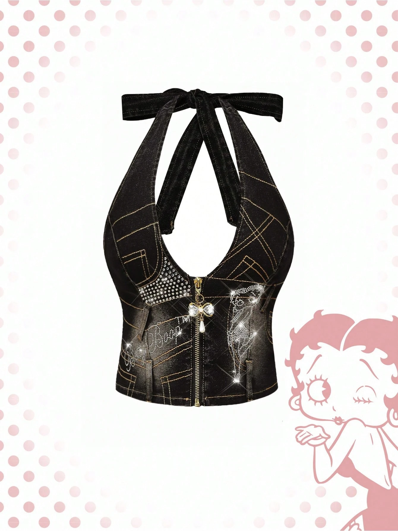 Betty Boop | ROMWE ملابس علوية جينز قصير مثير بتصميم غربي كاوبوي قديم مع ربطة للنساء