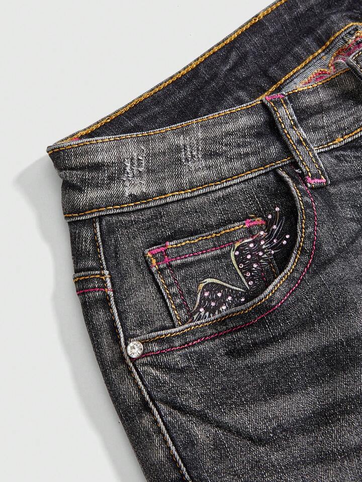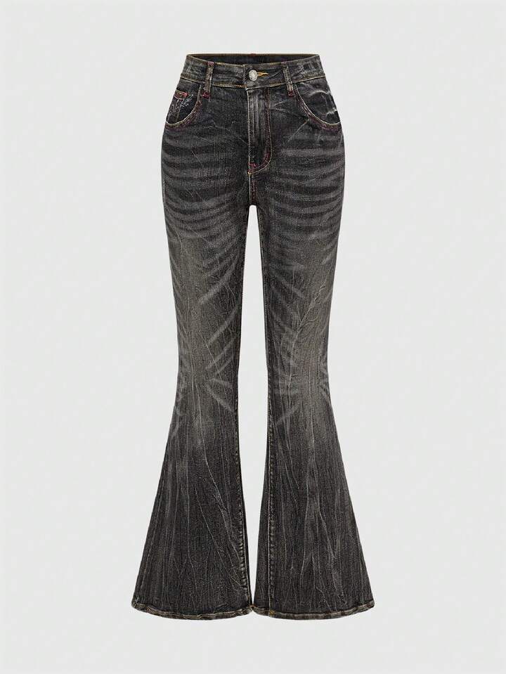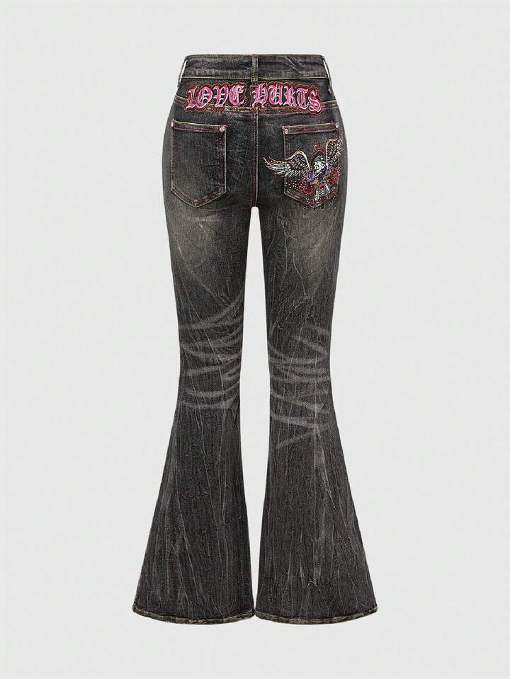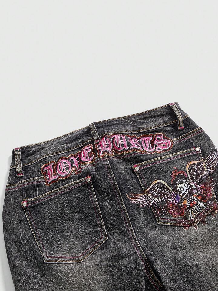 Betty Boop | ROMWE جينز بساق واسعة مطرز بأجنحة من الراين والرسوم الكرتونية للدراجات النارية بطراز Y2K