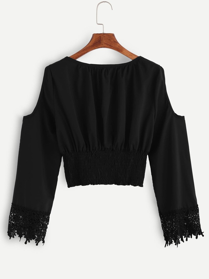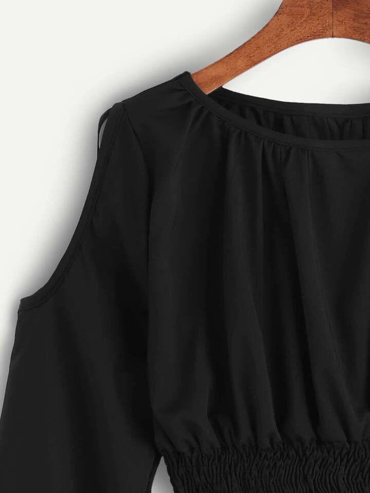 بلوزة سوداء عارية الكتف كم طويل