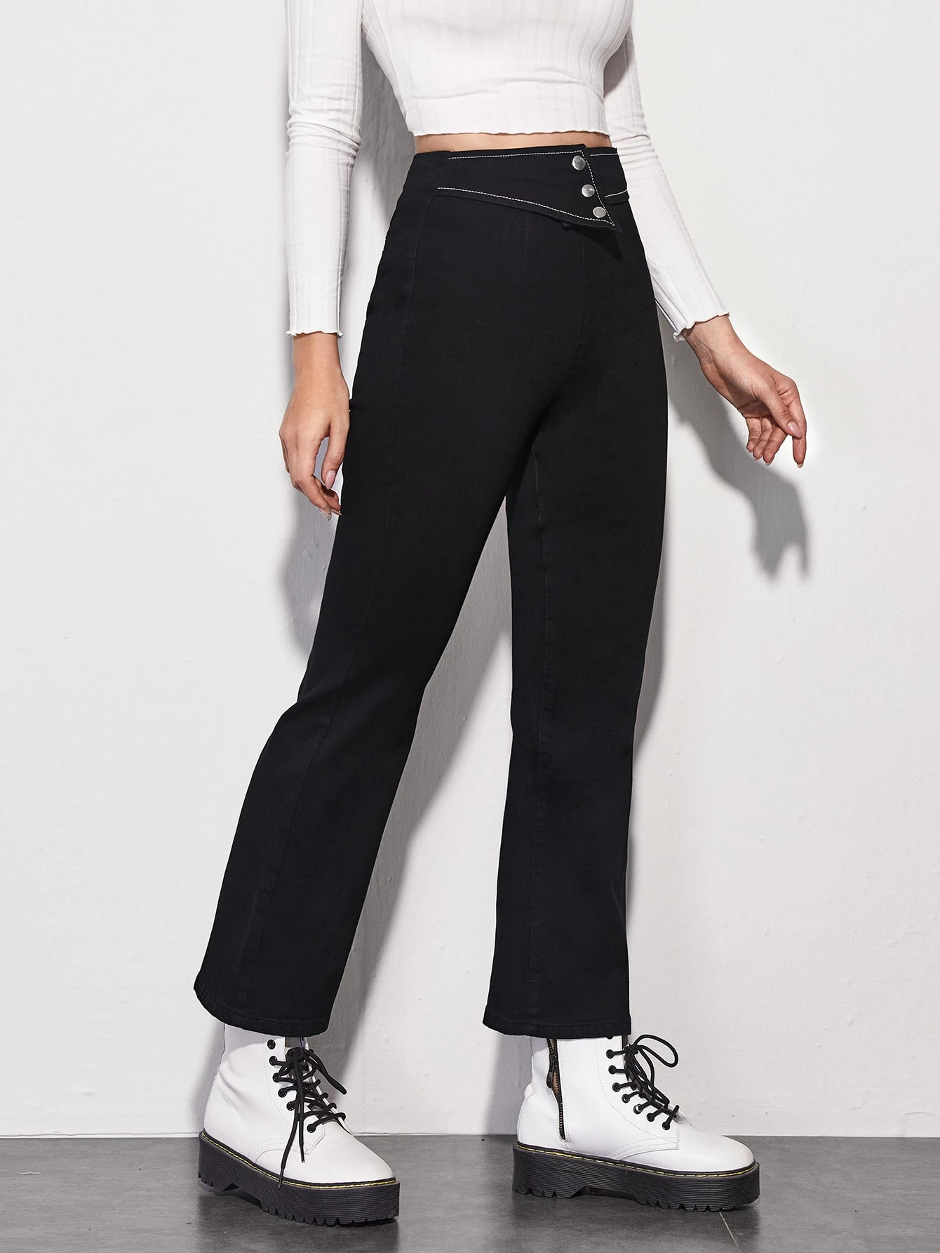 بنطلون جينز فيلر بأزرار خصر مغسل اسود