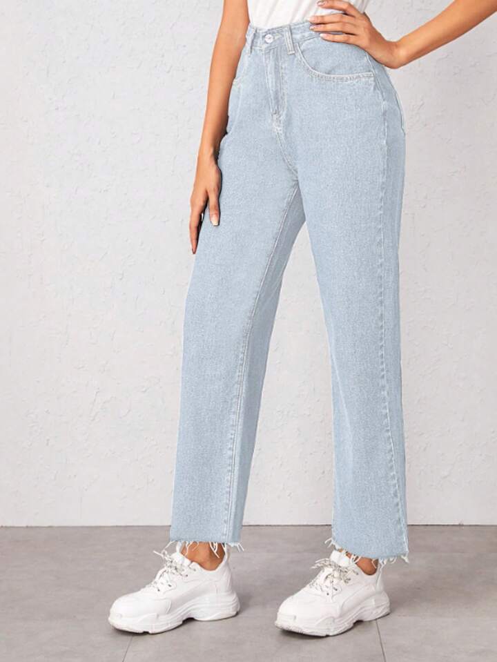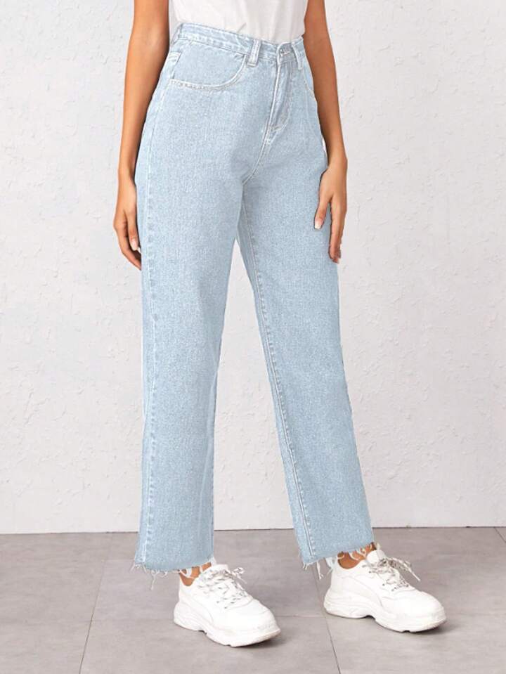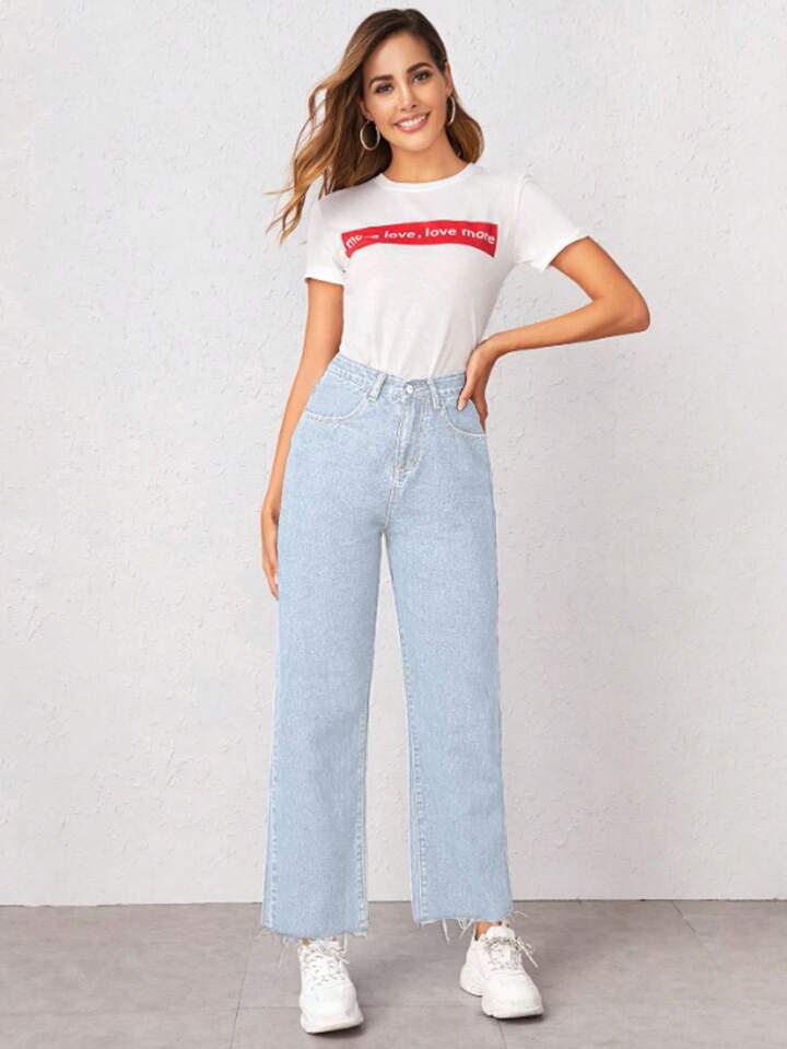 بنطلون جينز فضفاض بتأثير باهت وخصر عالي