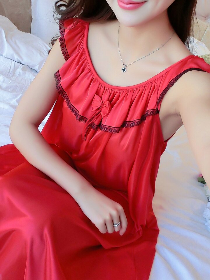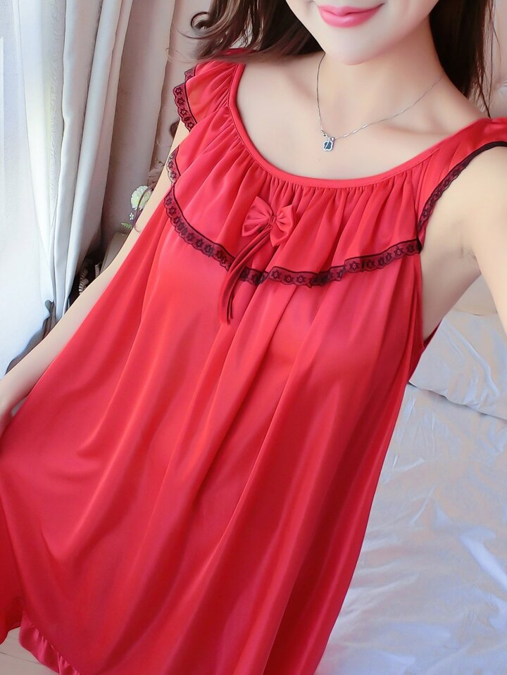 فستان نوم باربطة بكشكش