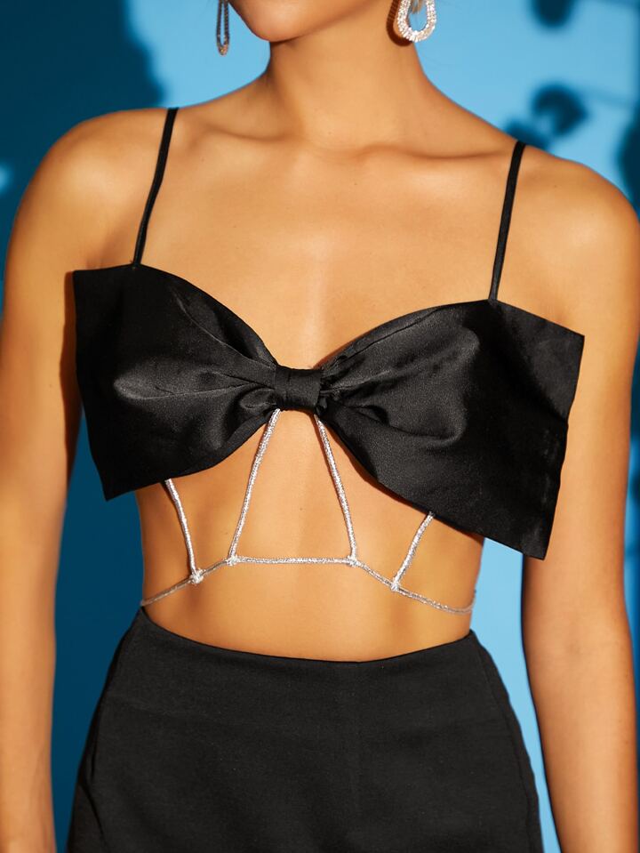 لباس علوي كامي قوس امامي قص مجوف مكشوف الظهر بربطة لامع حزام قصير ساتان