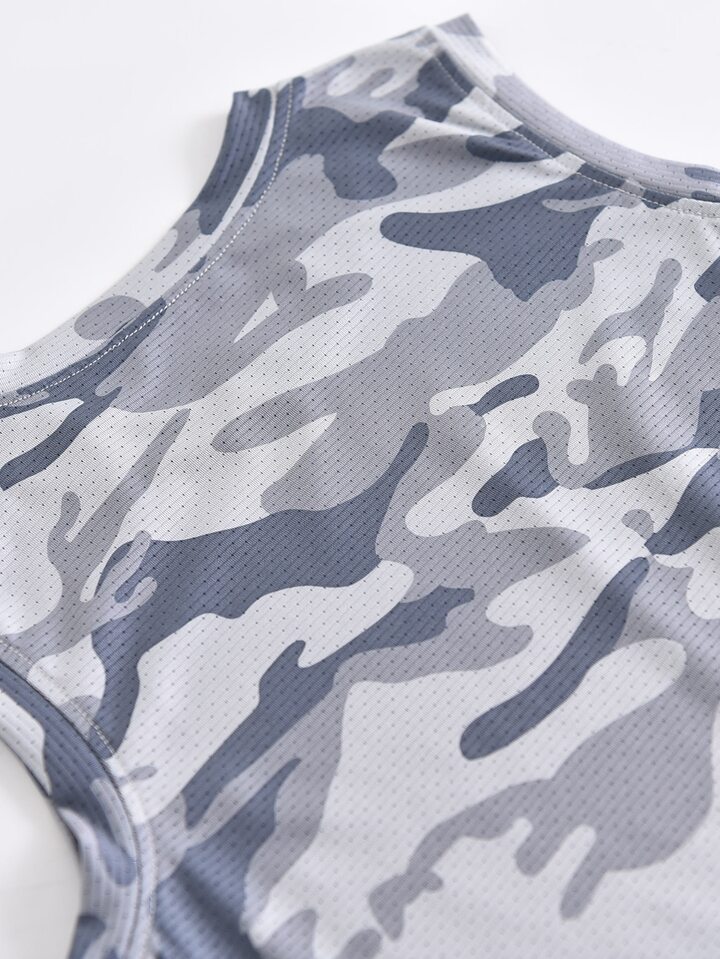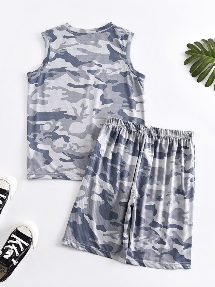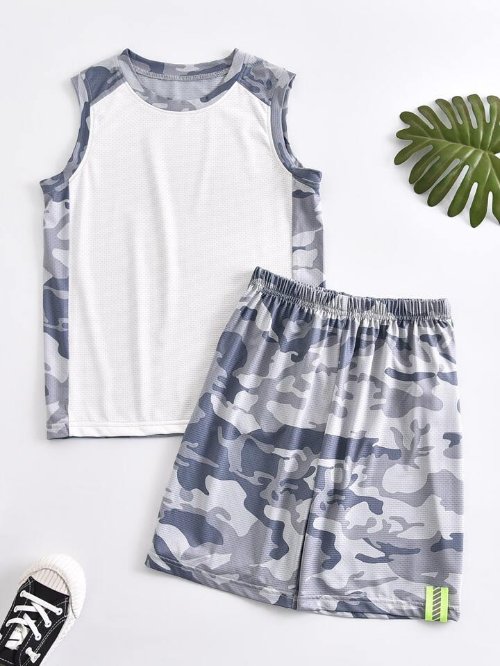 شورت تريك مع لباس علوي تانك بطباعة مموه للاولاد