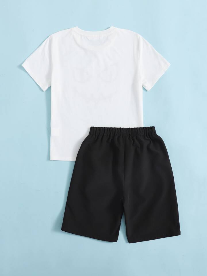 طقم شورت مع تي شيرت بجرافيك رسوم كارتون للاولاد