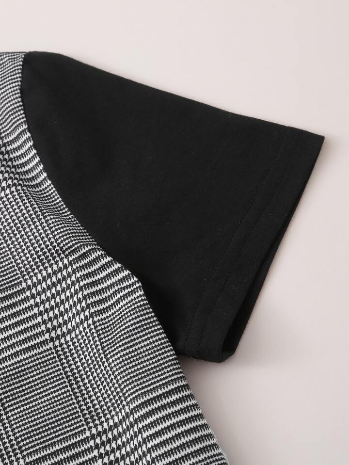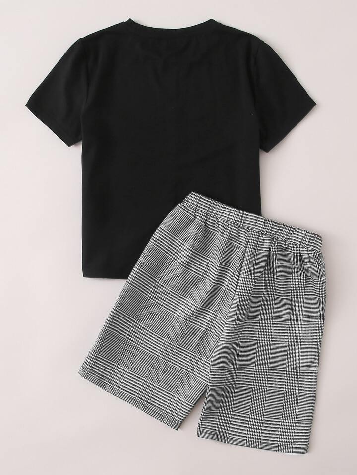 طقم سروال قصير مع لباس علوي بنقش مسنن بألوان متجانسة للاولاد