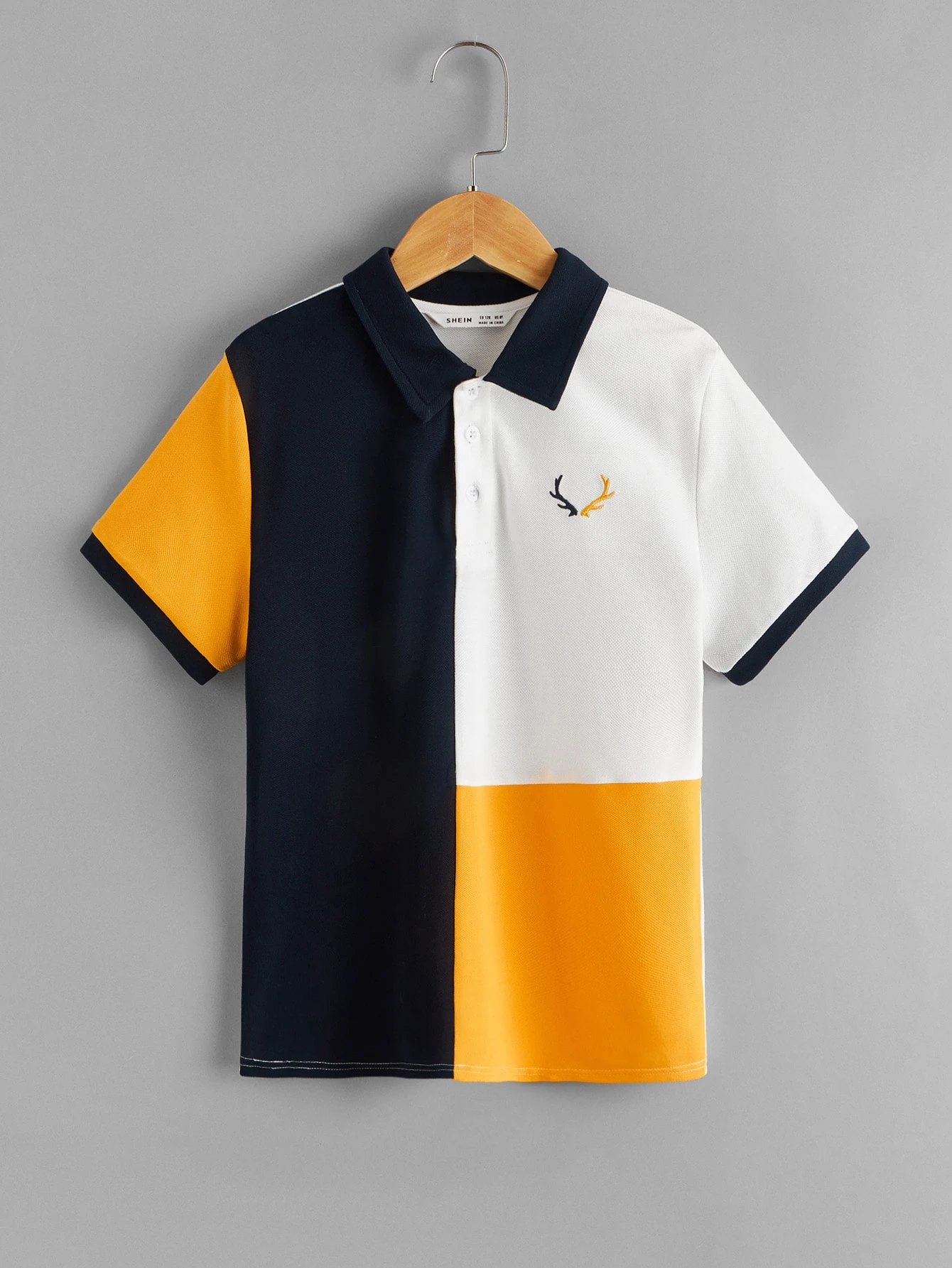 قميص بولو بألوان متجانس مطرز بجرافيك للاولاد