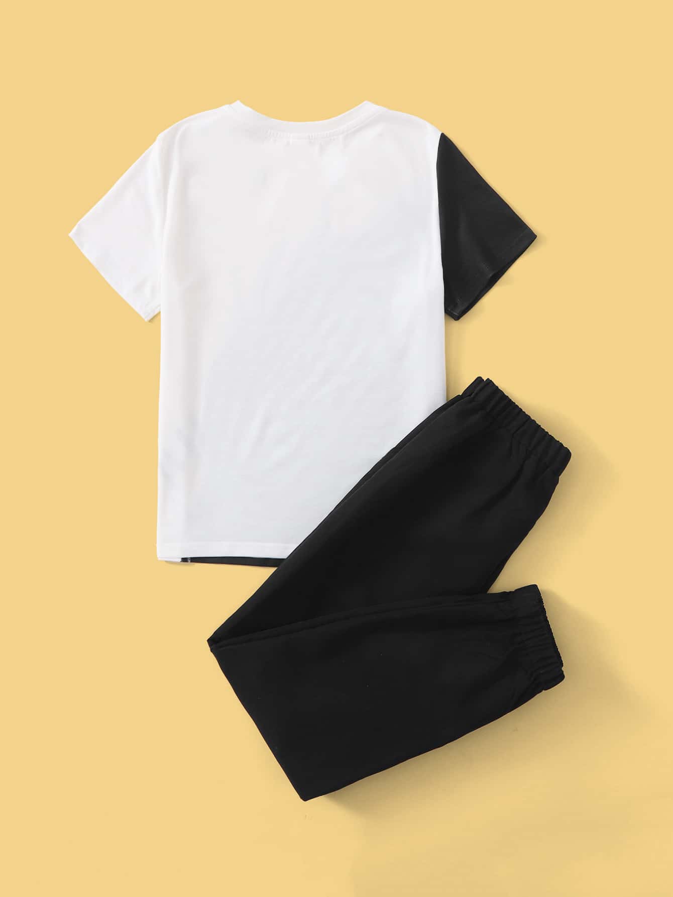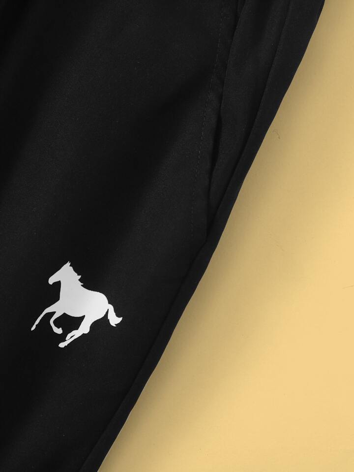 تي شيرت بطباعة الريش وحصان مع بنطلون رياضي للاولاد