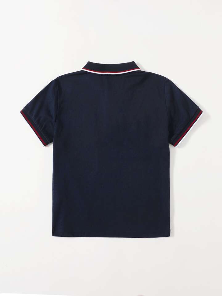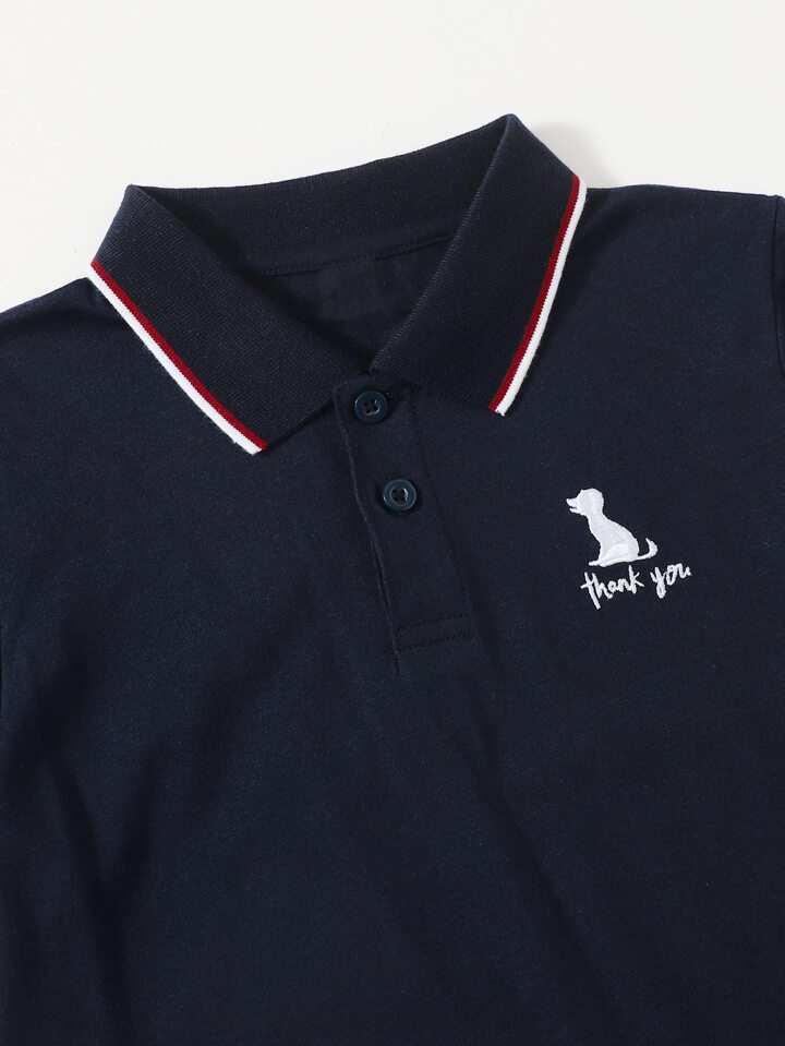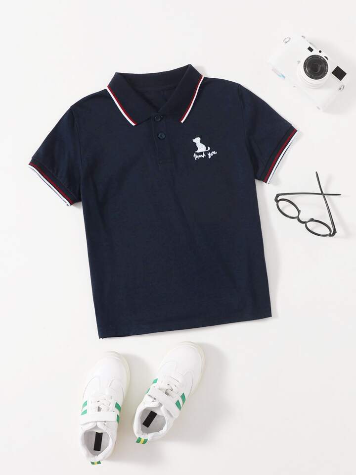 قميص بولو مقلم مخطط مطرز بعبارة للأولاد