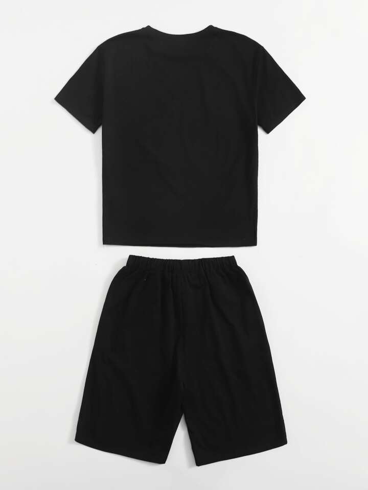 طقم شورت تريك مع تي شيرت بجرافيك عبارة للاولاد