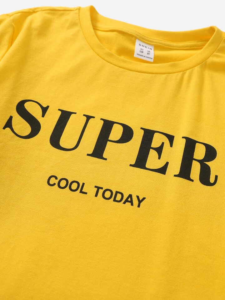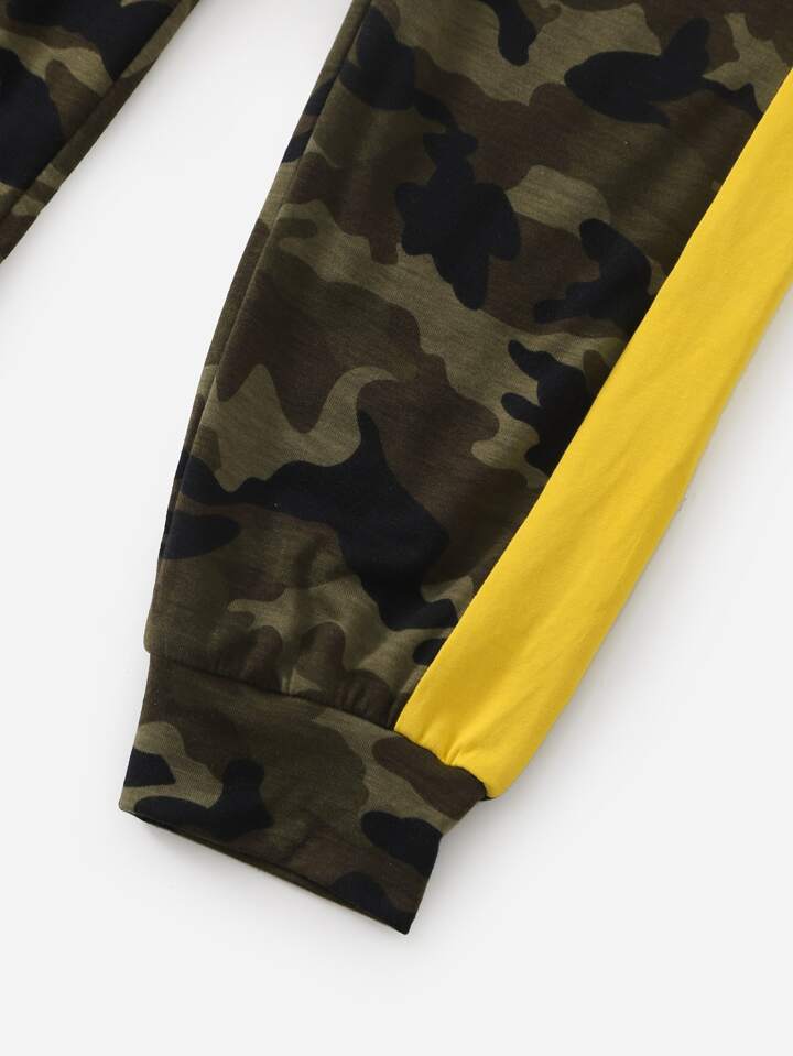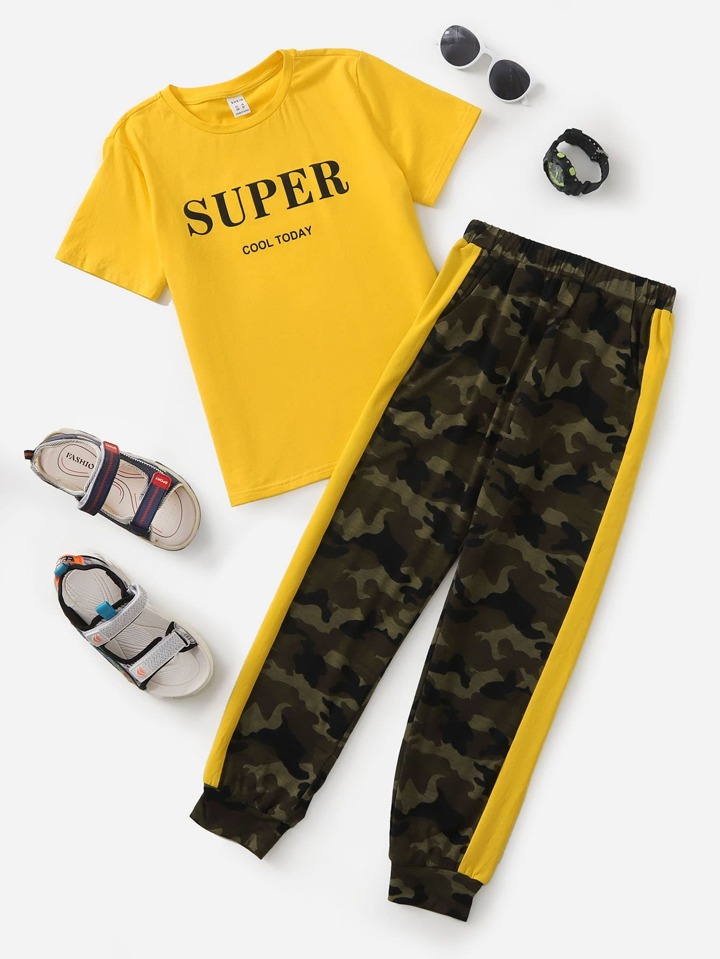 طقم توب بجرافيك عبارة وبنطلون كامو بشريط جانبي متباين أولاد