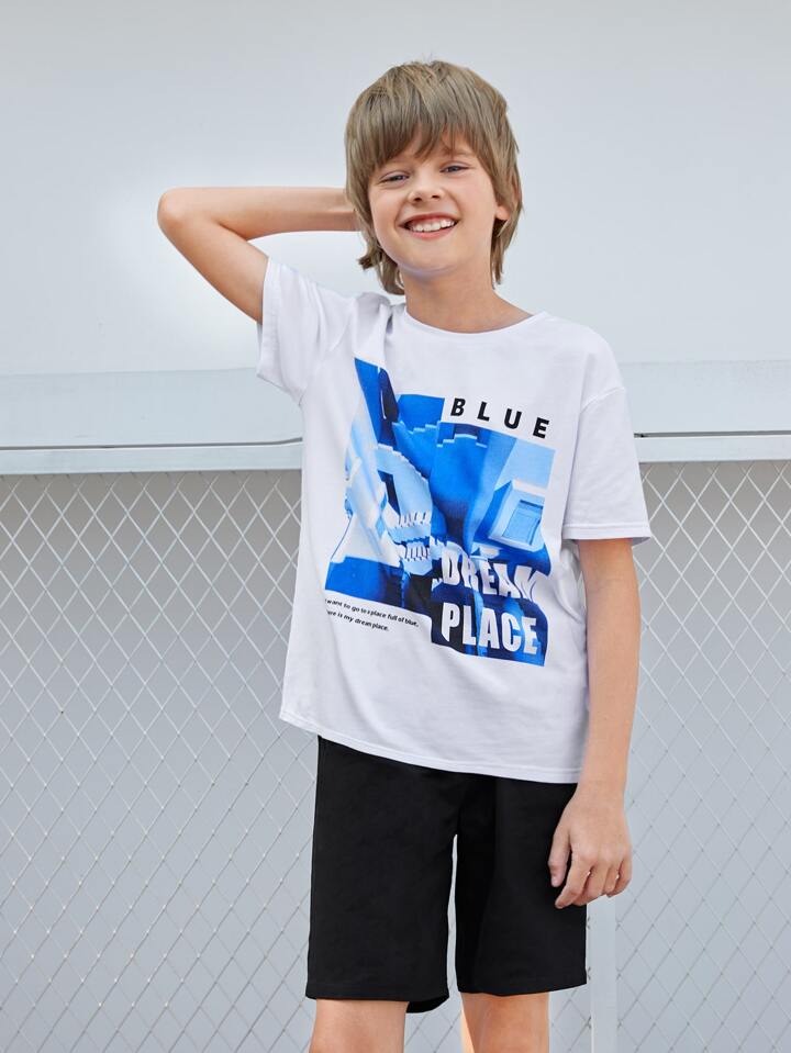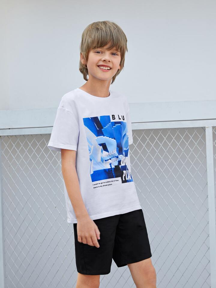 طقم شورت مع لباس علوي بجرافيك عبارة للاولاد
