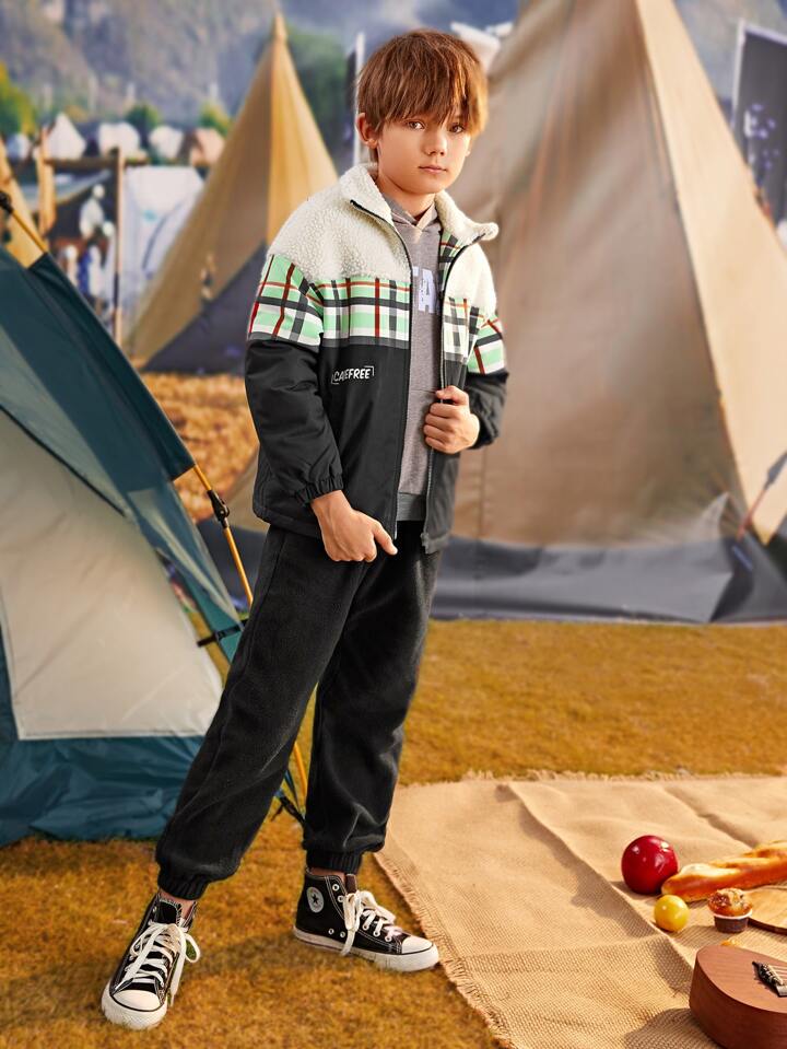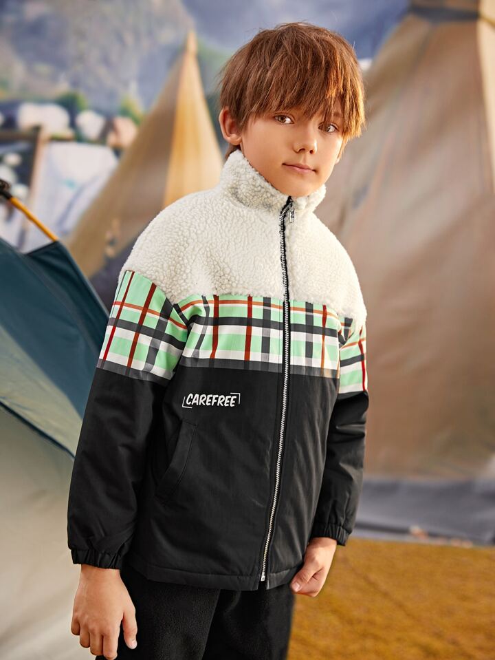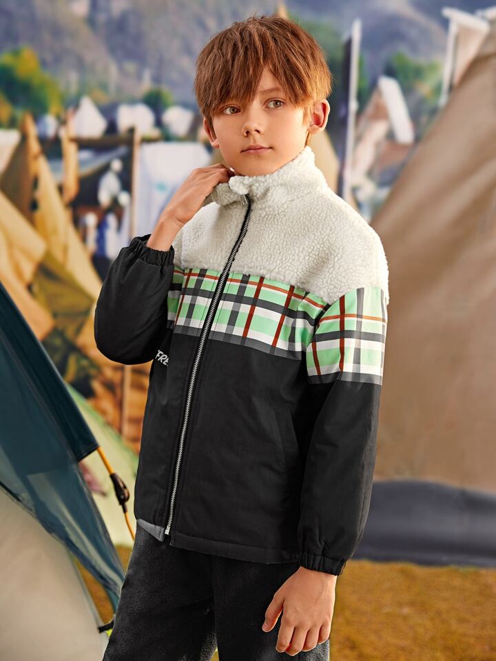 ملابس خارجية للأولاد سستة قماش صوفي مقلم كاجوال