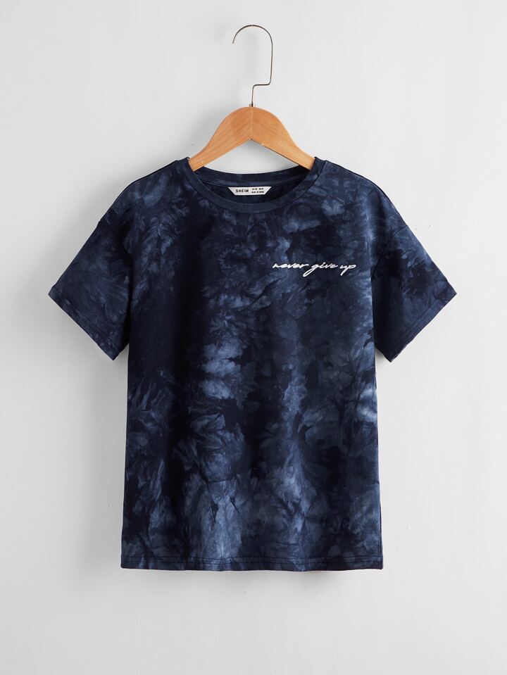 تي شيرت بصبغ متعادل بجرافيك شعار للاولاد