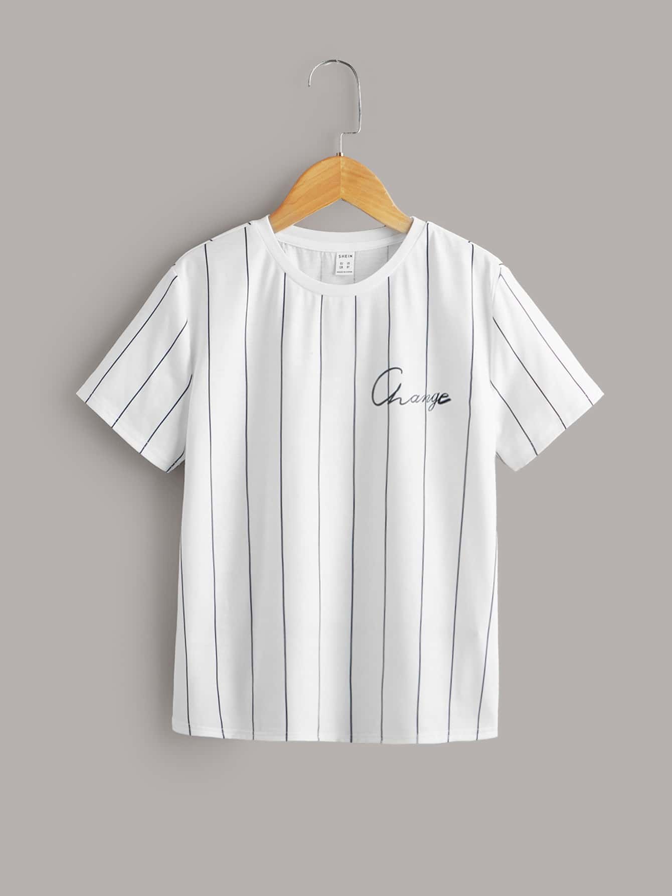 تي شيرت بجرافيك عبارة مخطط للاولاد