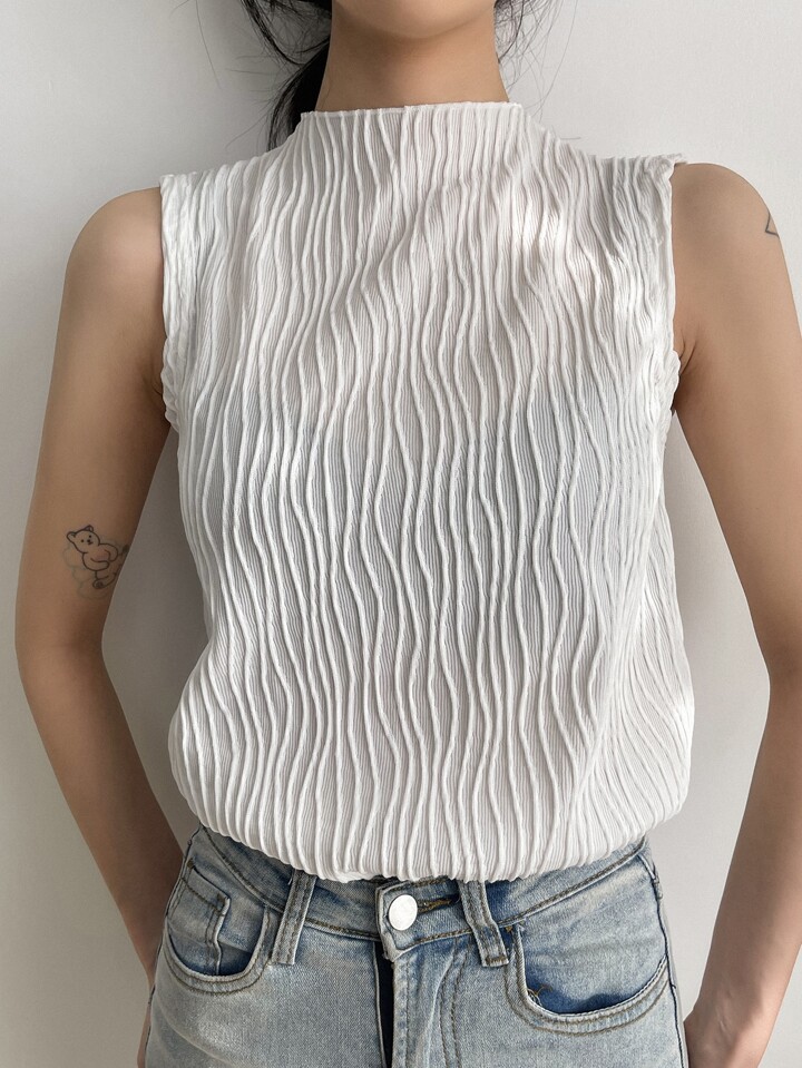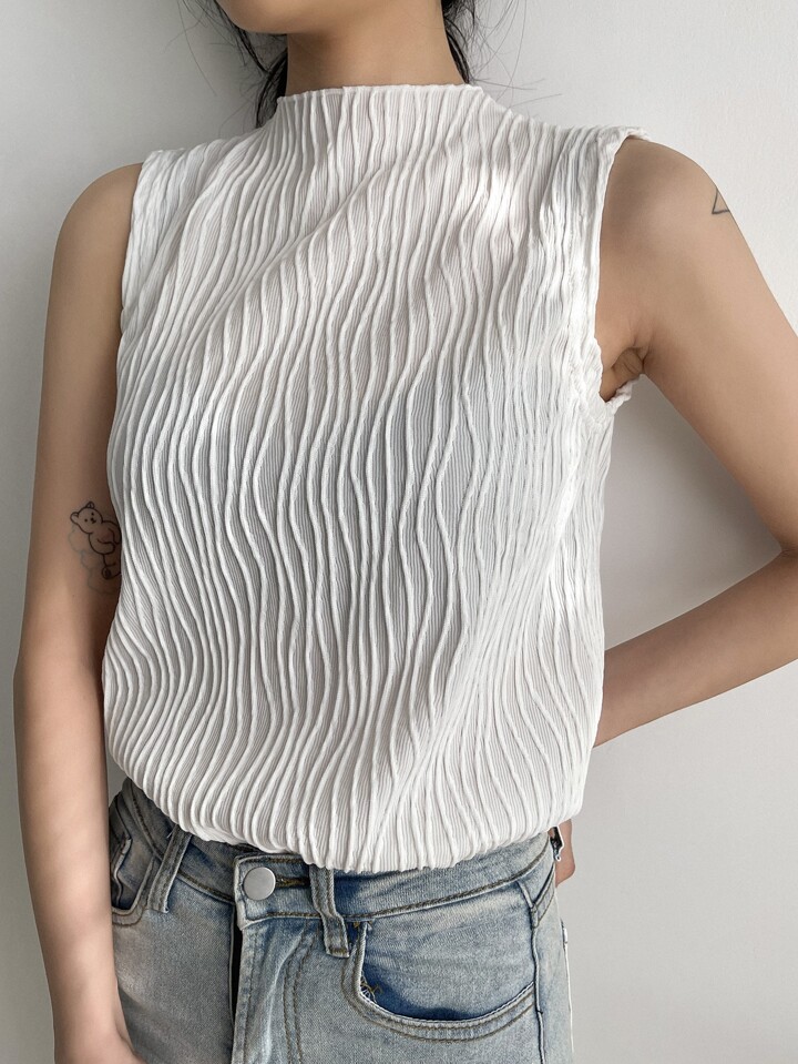 ملابس علوية قطن أنيقة للنساء بتصميم أكتاف واسعة وياقة واقفة، لون أحادي، ملمس منسوج، موديل صيفي