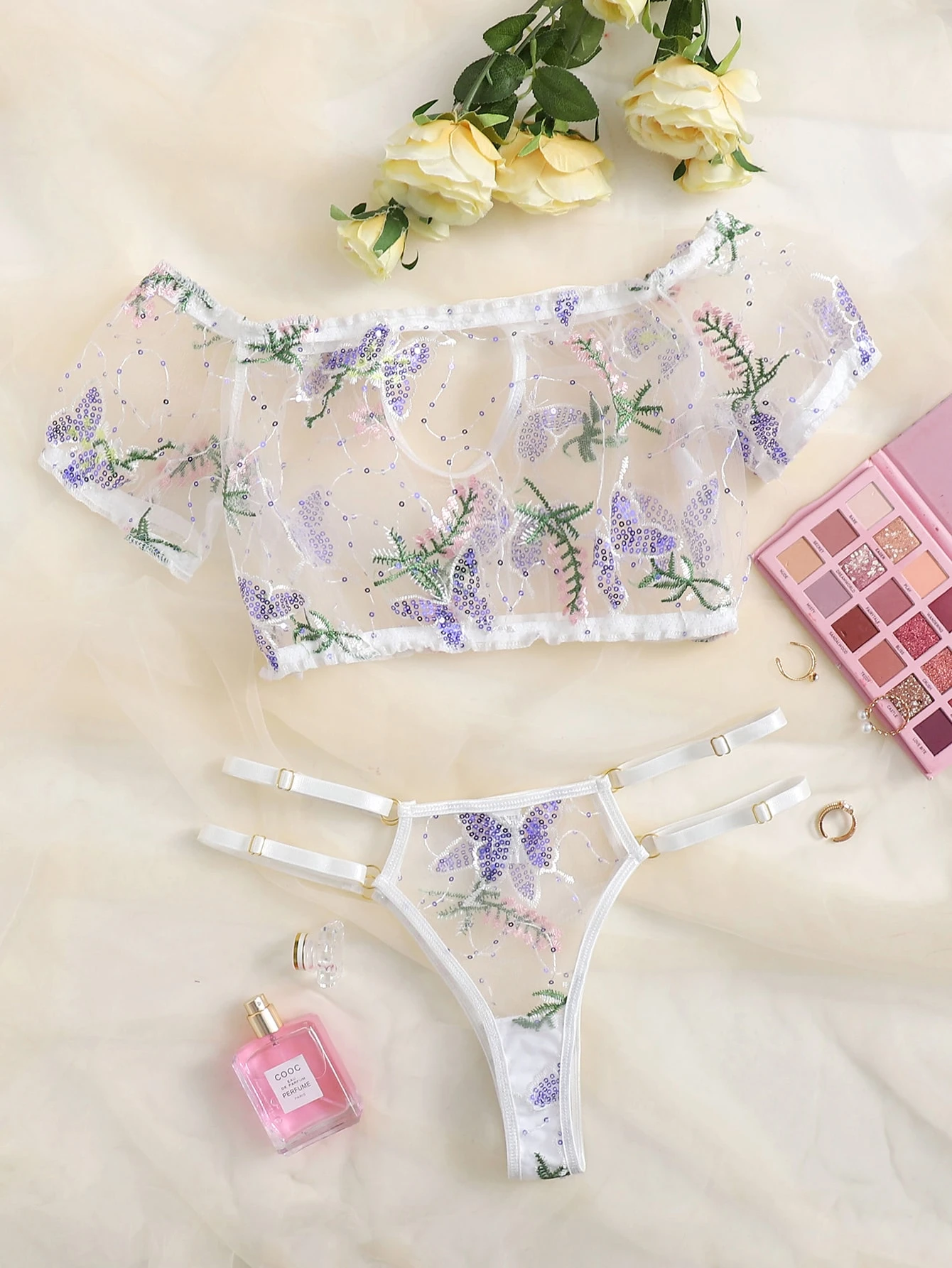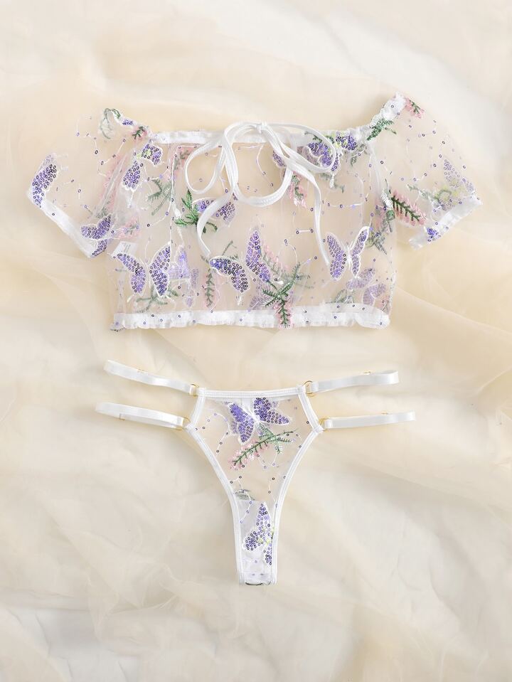 طقم لينجري ملابس داخلي شفاف فراشة مقصوص