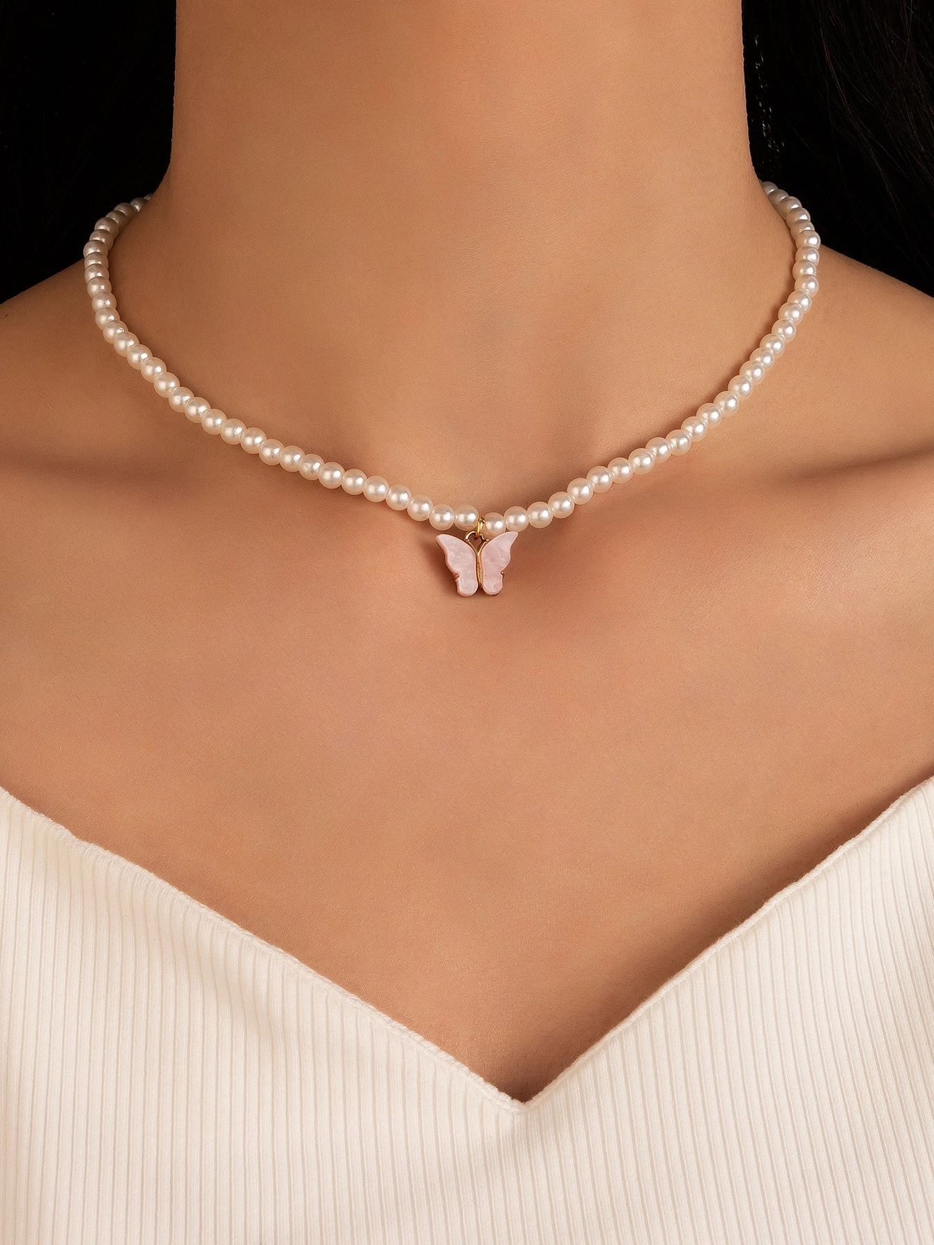 قلادة زخرفة فراشة ازرار لؤلؤ