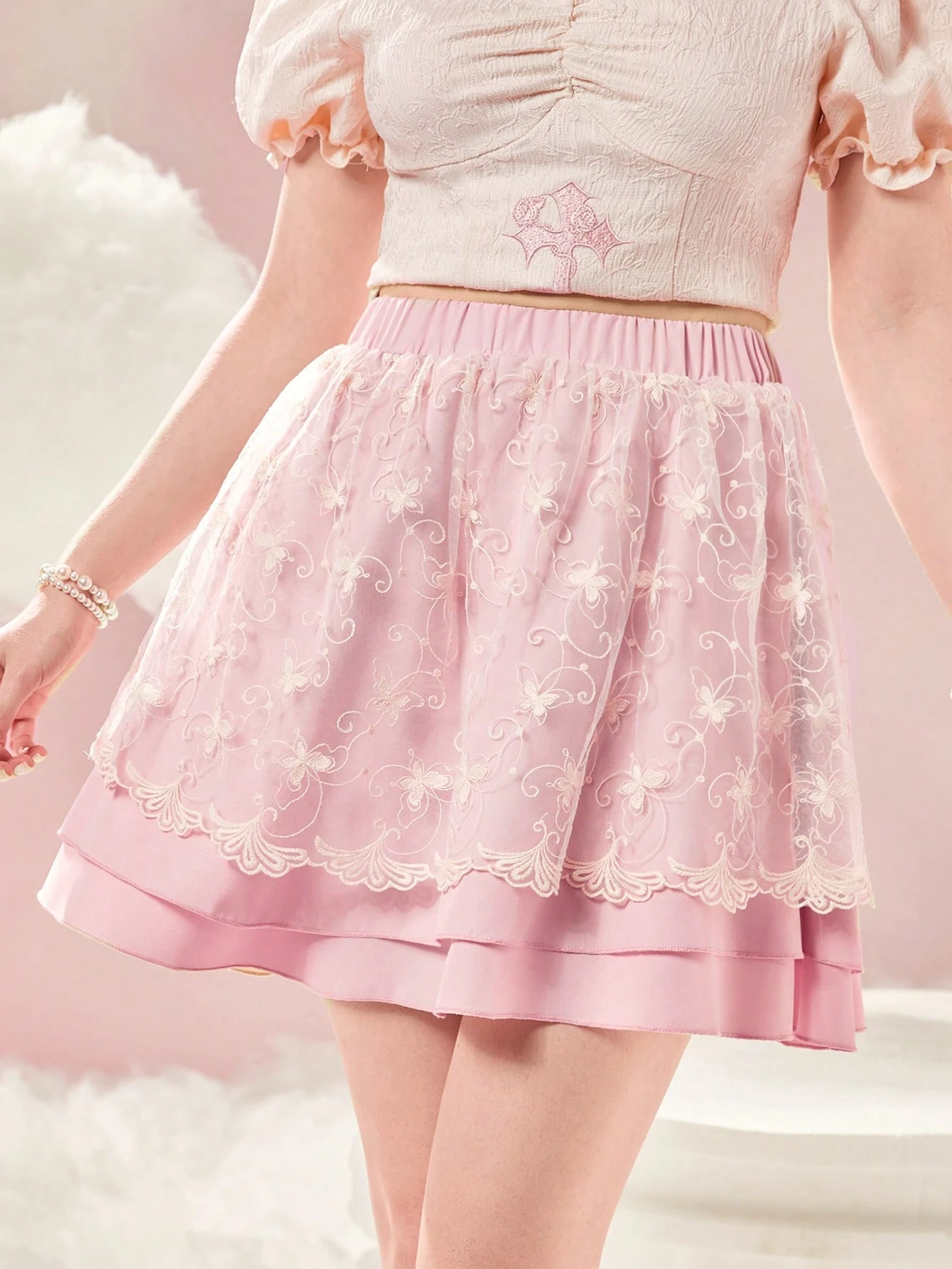 تنورة مطرز بفراشة شبكي شامل حافة طبقات