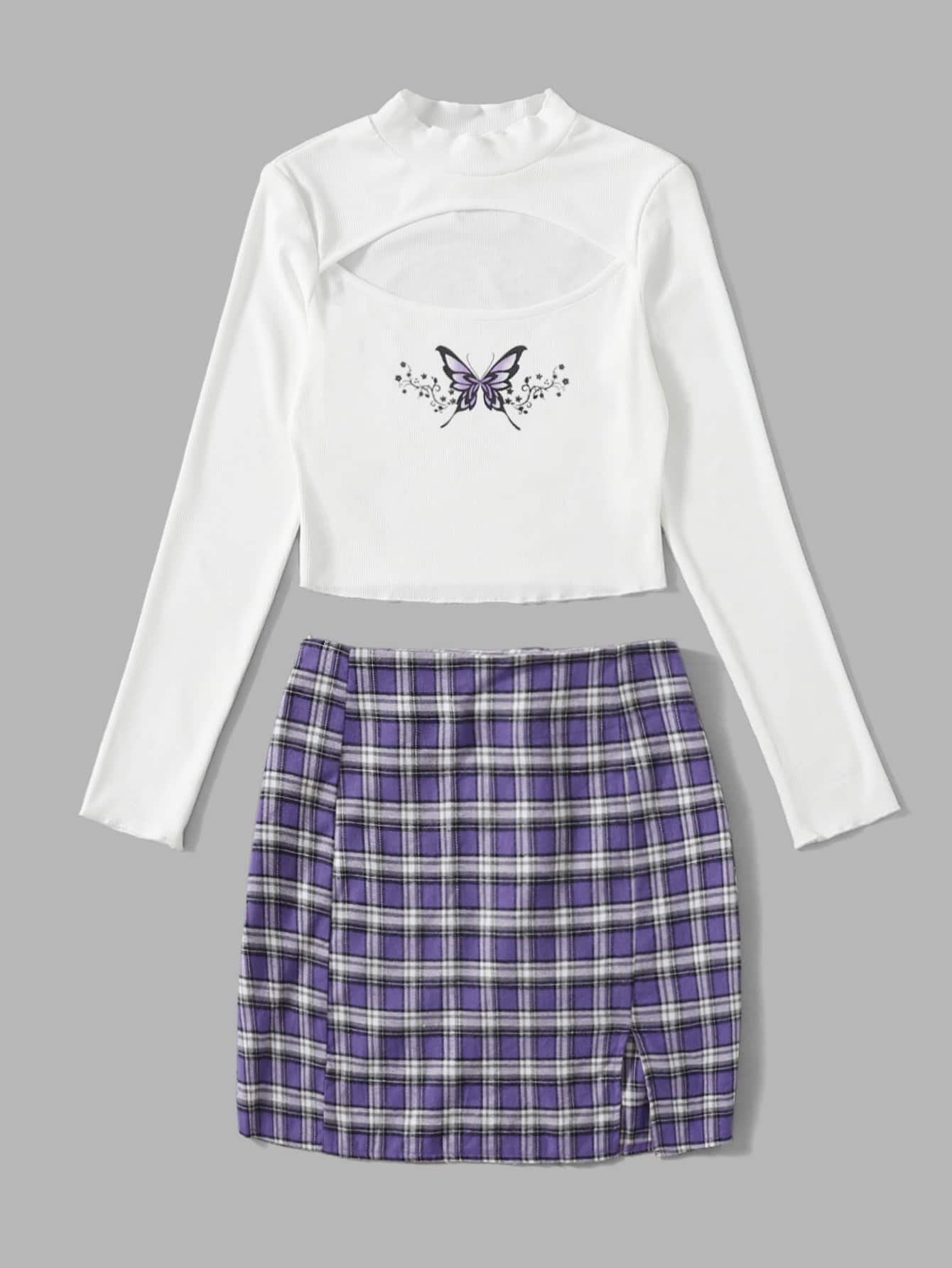 أطقم قطعتين نسائية مثقوب ممزق محبوك الطرطان فراشة طلاب