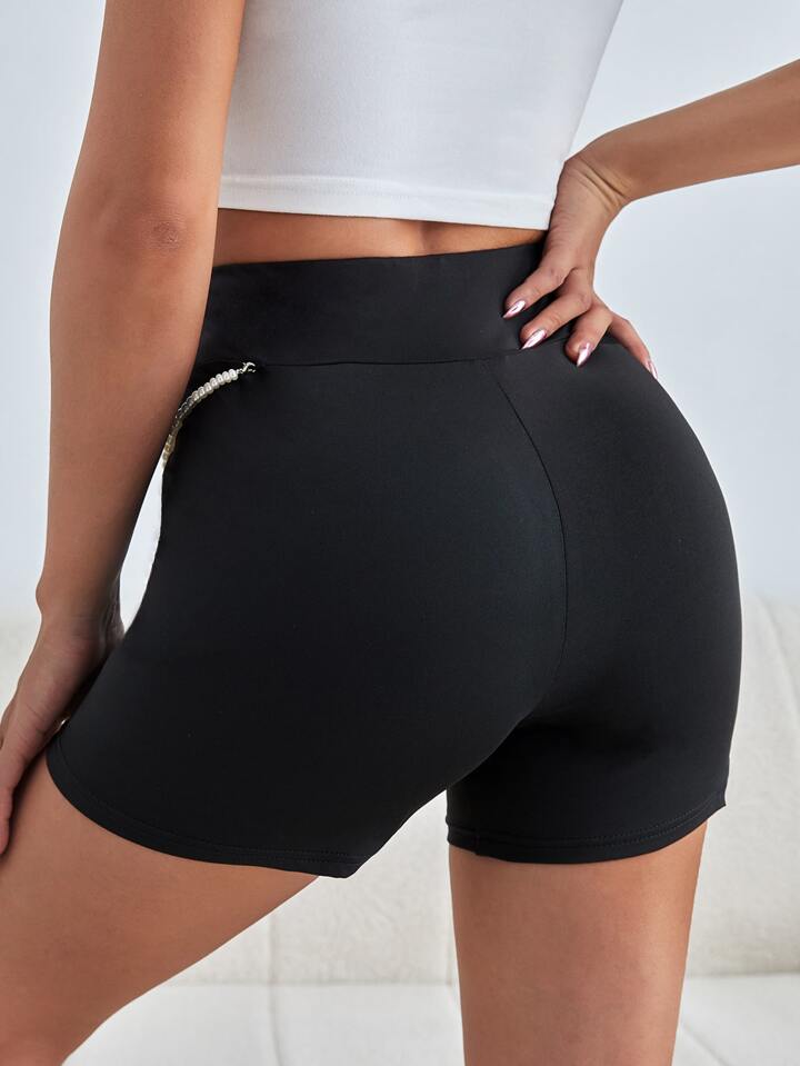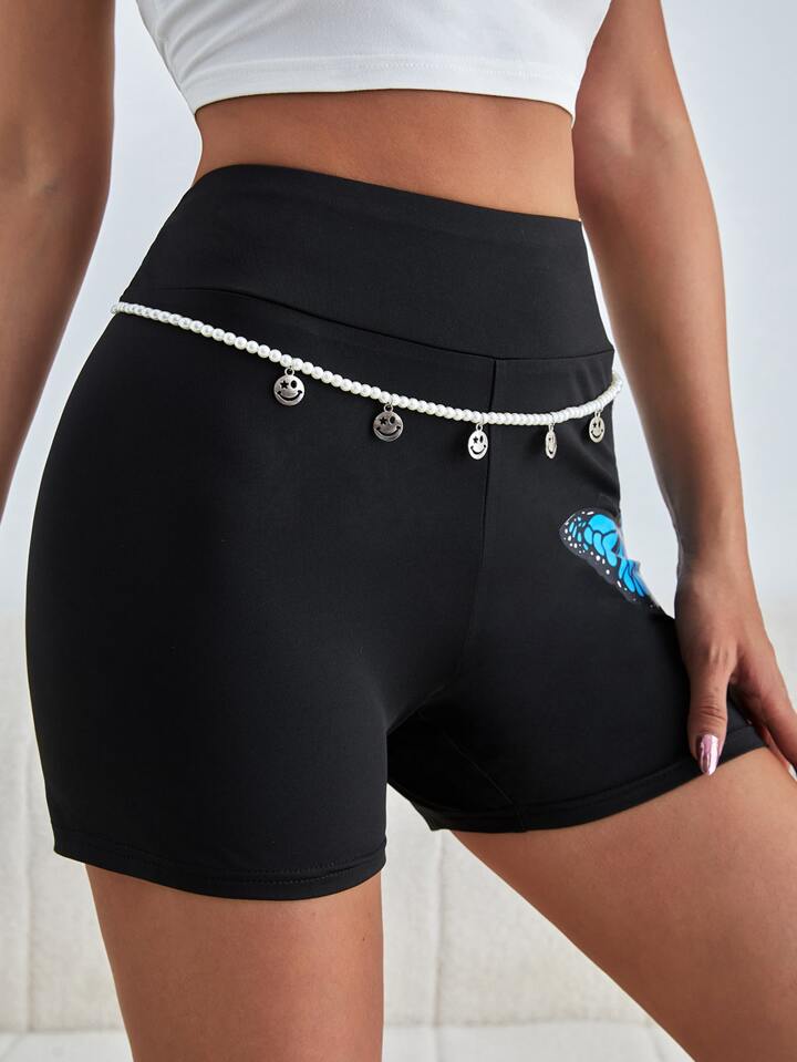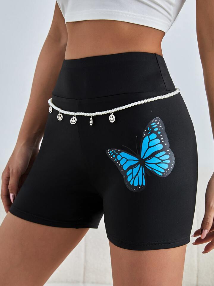 شورت ركوب الدراجات النارية بطباعة الفراشة مع لؤلؤ سلسلة