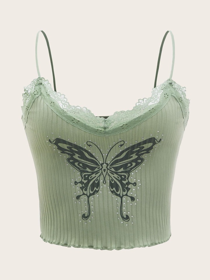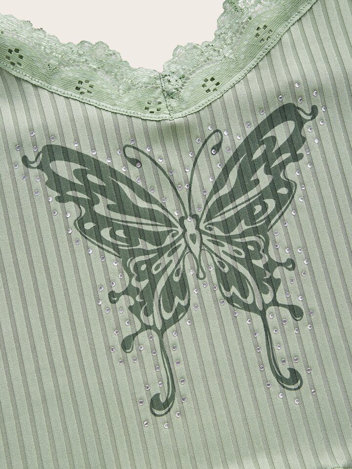 لباس علوي كامي بطباعة الفراشة حجر الراين مقلم دانتيل