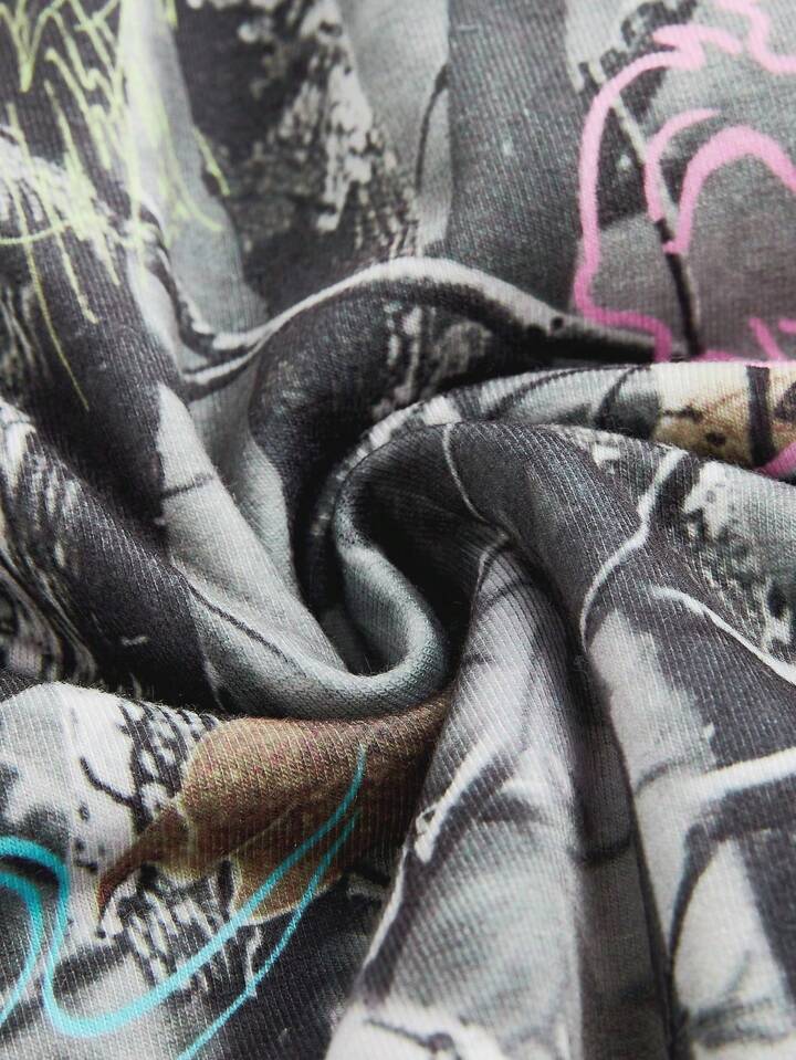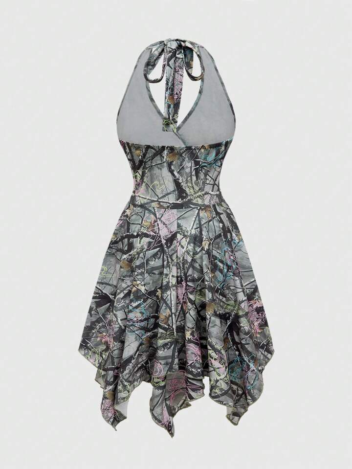 فستان متوسط الطول من قماش الكامو مع طبعة إسكريبل لحاشية غير متماثلة