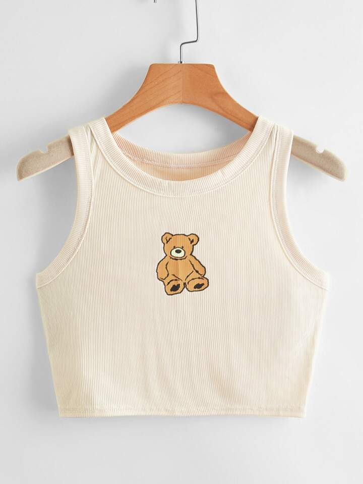 بلايز بحمالات محبوك تصميم الكرتون كاجوال