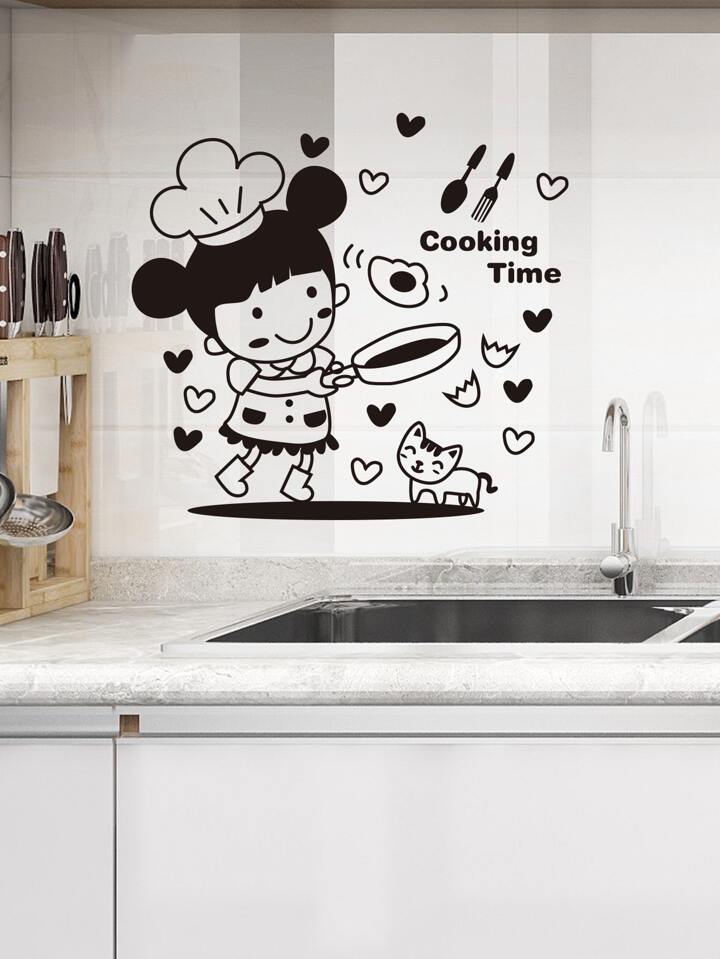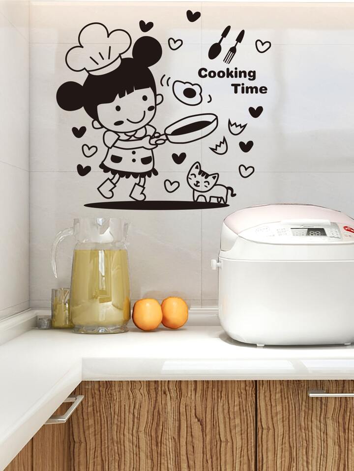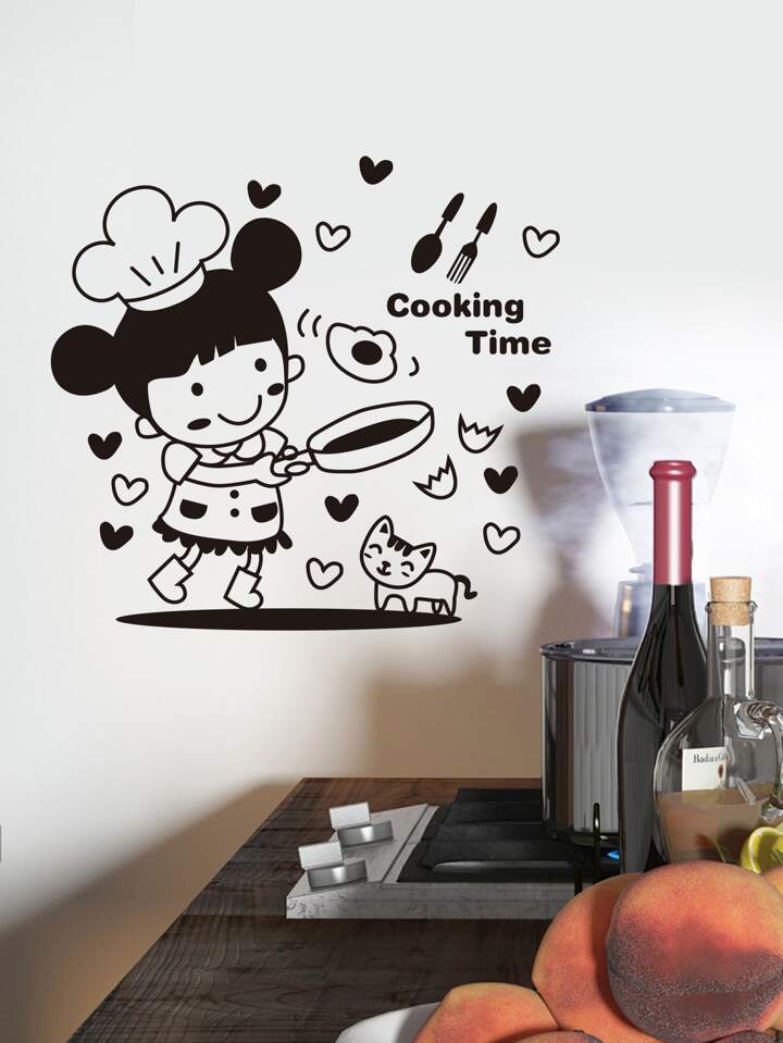 لواصق حائط بطباعة فتاة رسوم كرتونية
