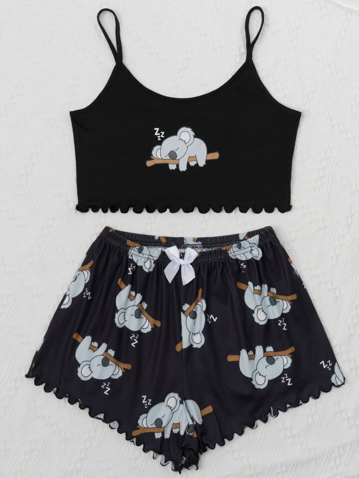 طقم بيجامة بقوس وبجرافيك رسوم كارتون