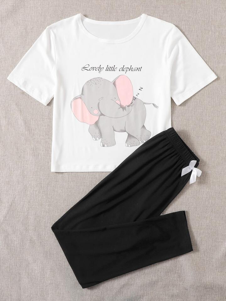طقم بيجامة بربطة فراشة أمامية وجرافيك كرتون