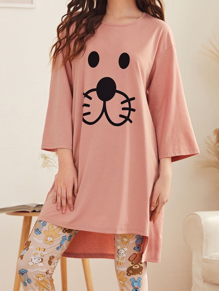 طقم بيجامة من تيشيرت وليغنز مطبوع بتصميم كرتوني، ملابس خريفية
