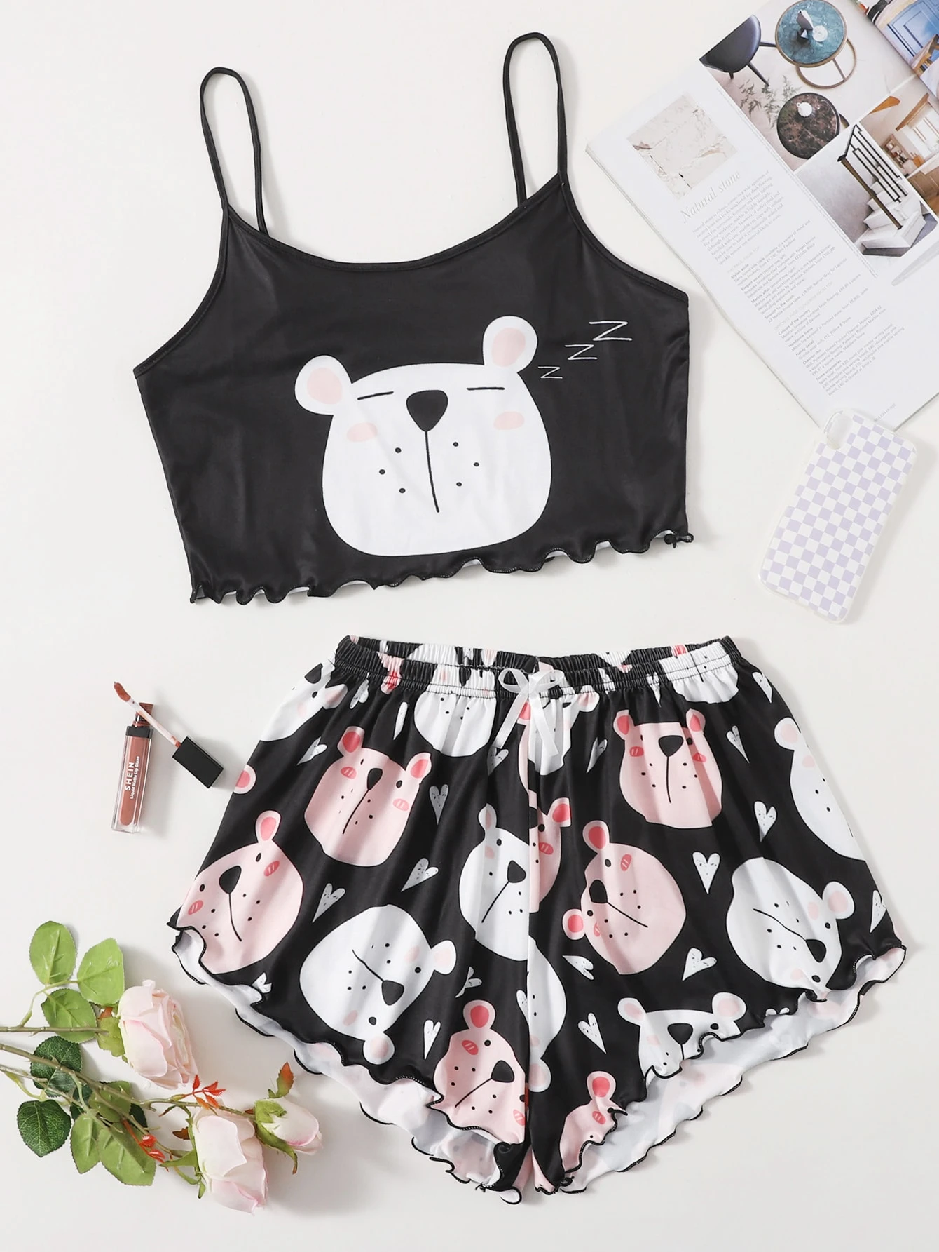 طقم بيجامة كامي وبجرافيك رسوم كارتون