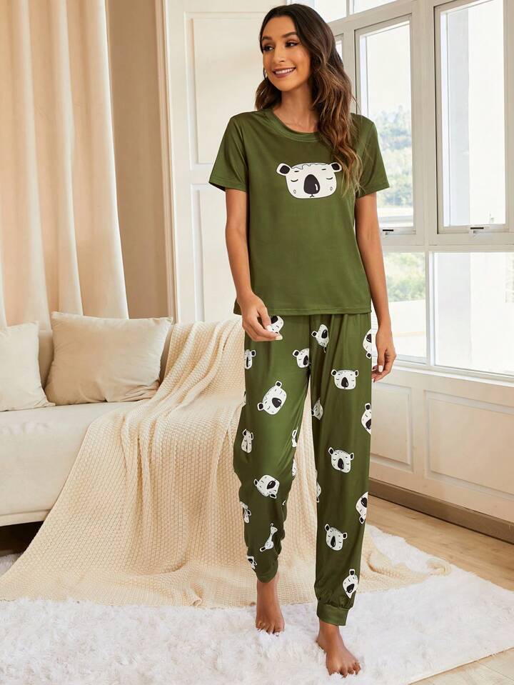 طقم بيجاما / مجموعة بيجاما تتكون من بلوزة برسوم كرتونية وبنطلون بطباعة كاملة