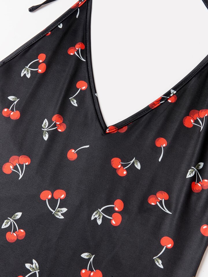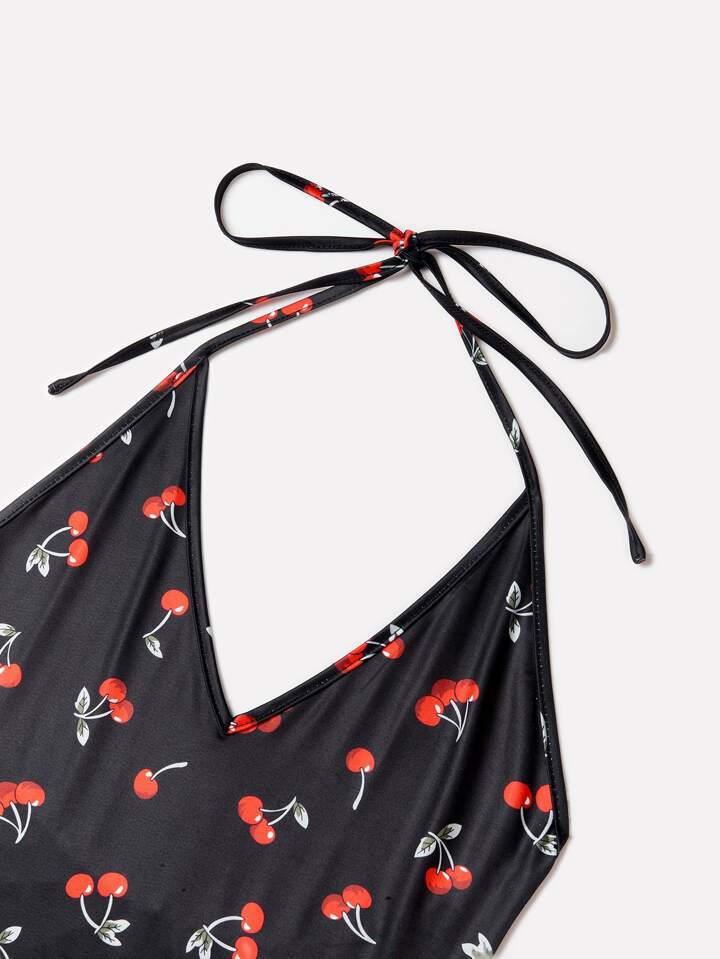Cherry Print Halter Bodysuit