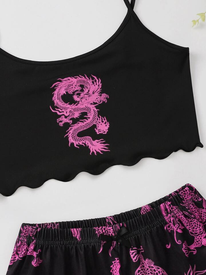 طقم بيجامة مقلم خس بطباعة تنين صيني