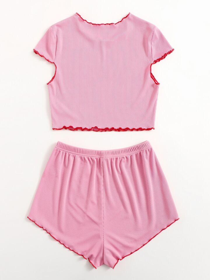 طقم بيجامة سروال قصير مقلم خس وبطباعة تنين صيني