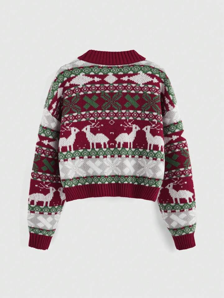 كارديجان مخملي دافئ للنساء بتصميم شجرة والغزلان الحمراء، للخريف/الشتاء