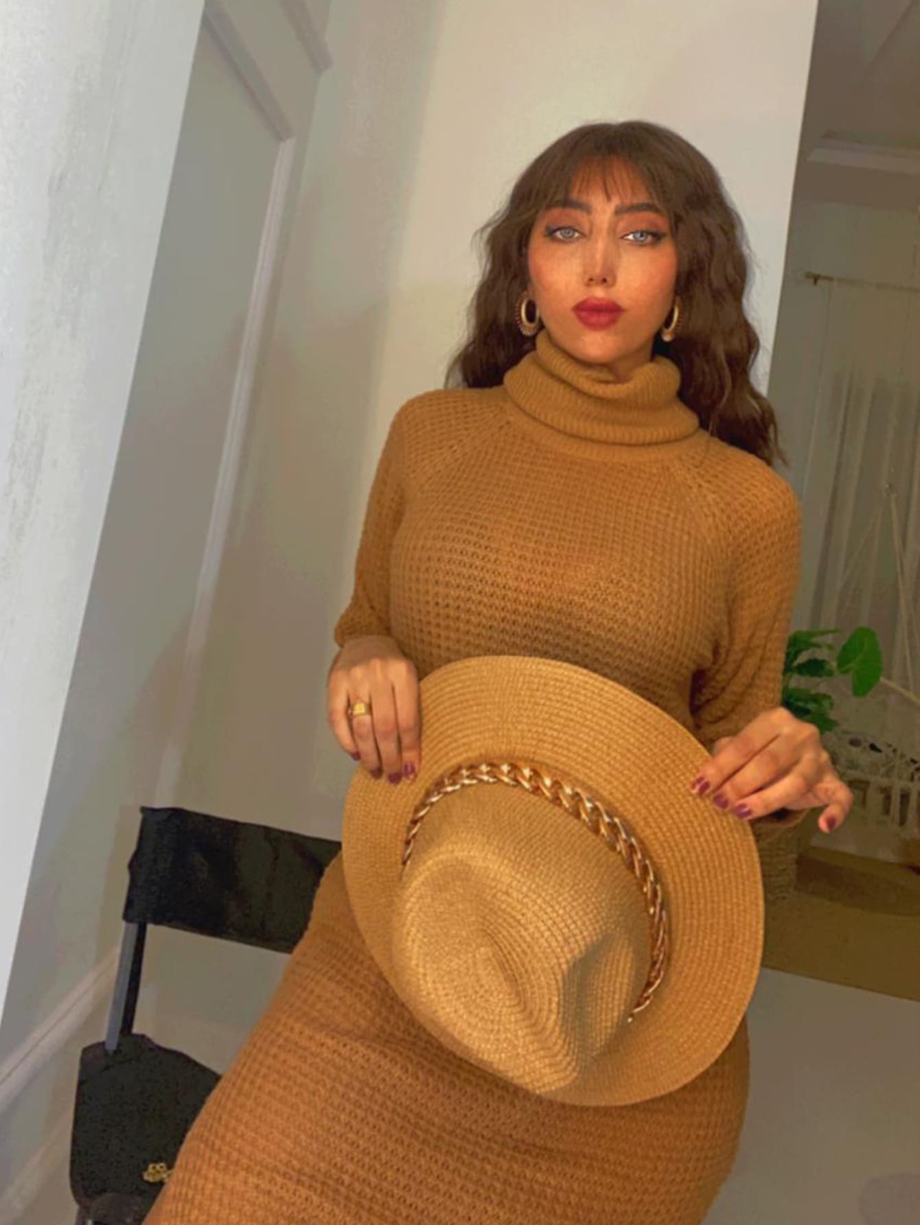 الفستان الصوفي بممزق الجانب وأكمام الرغلان وتوالت الياقة