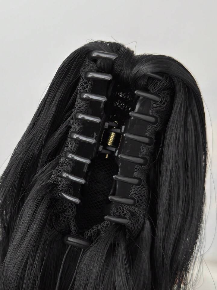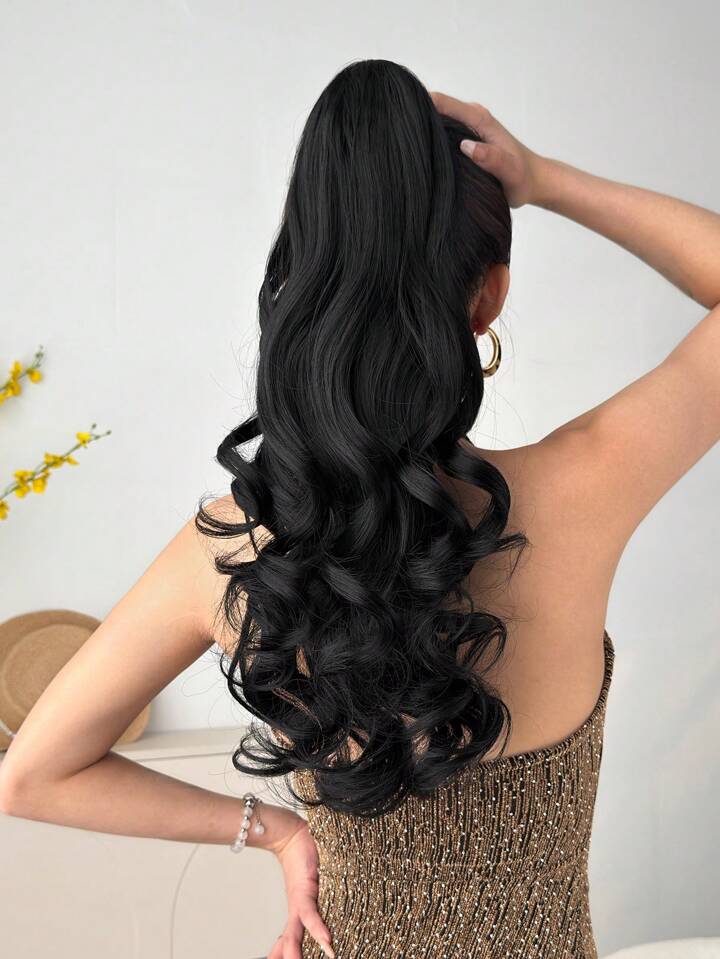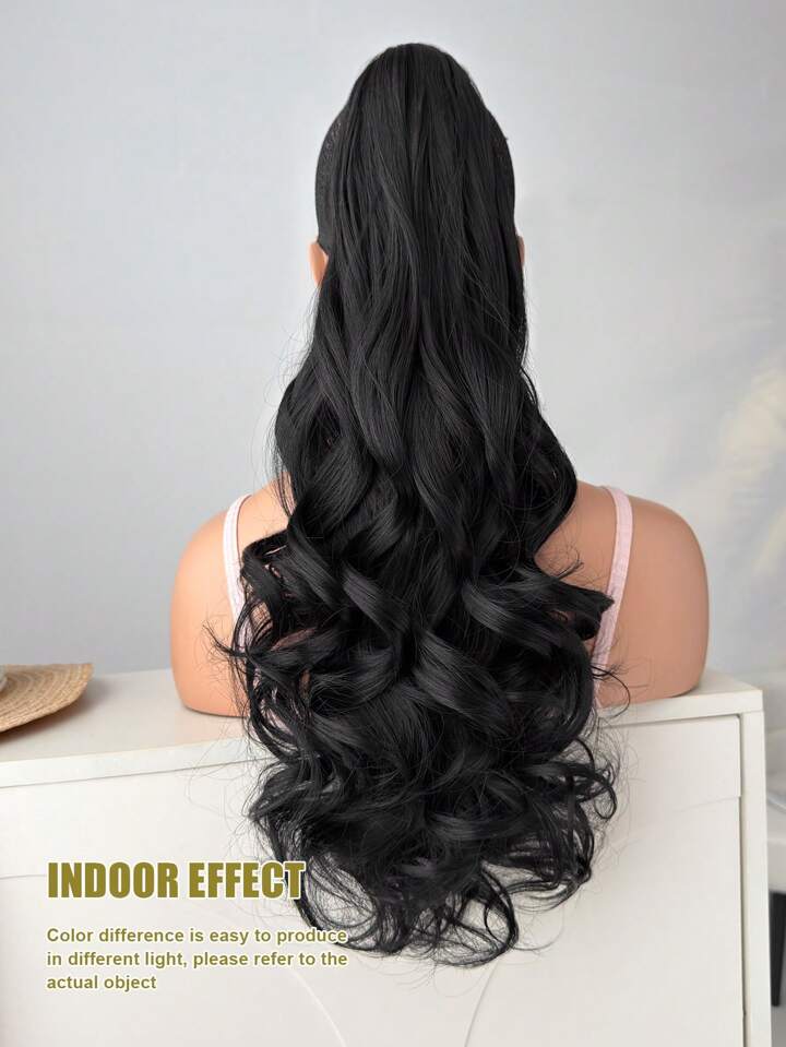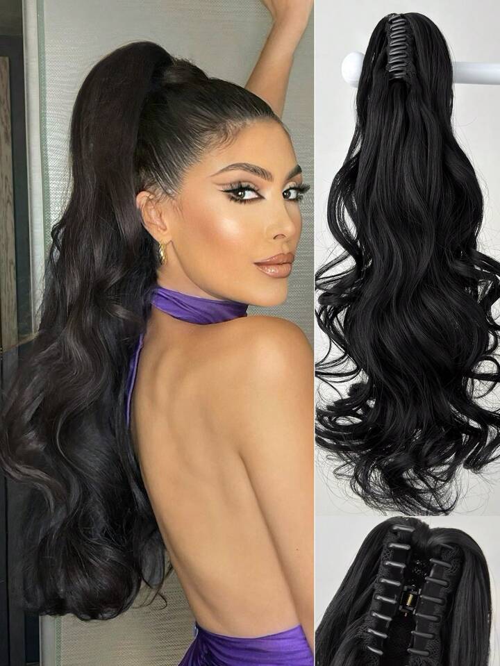 ملحقات شعر على شكل ذيل حصان مخلب لون أسود داكن بطول 55.88 سم مموج طبيعي مقاوم للحرارة من الألياف الاصطناعية على شكل ذيل حصان للنساء للاستخدام اليومي باروكة