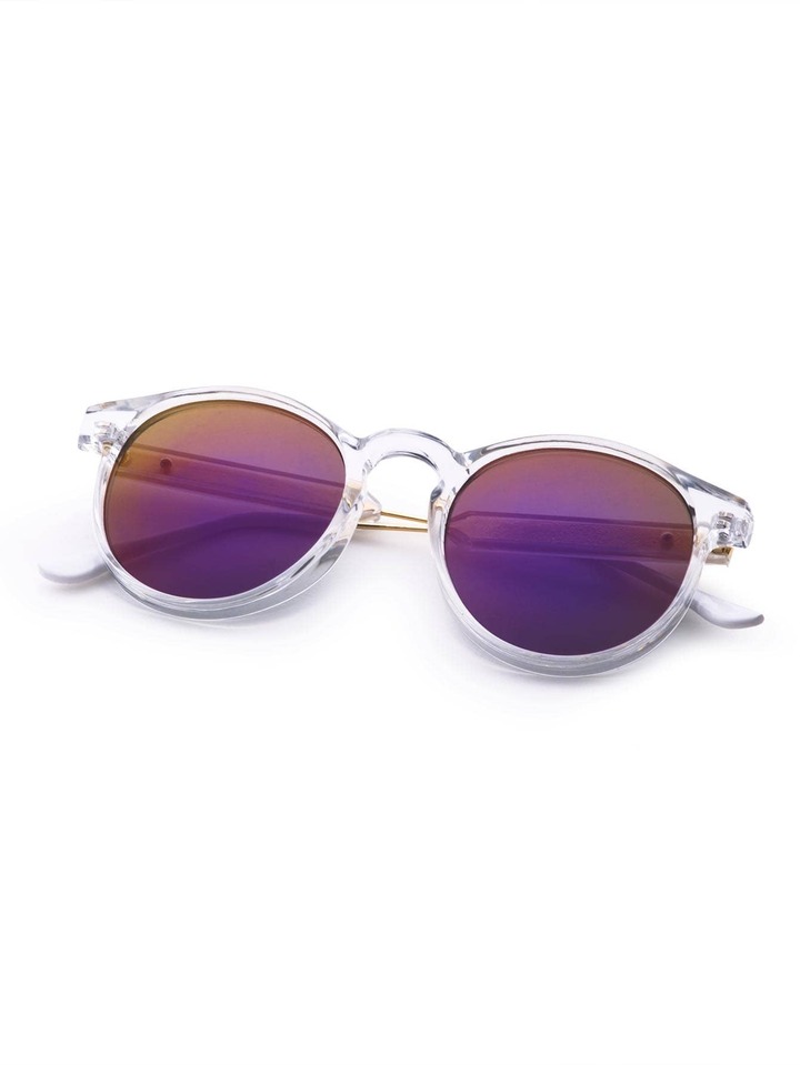 نظارات موضة بعدسات مرآة بنفسجية بإطار شفاف