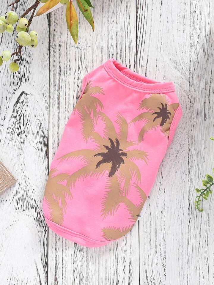 تي شيرت الحيوانات الأليفة بطبعة شجرة جوز الهند